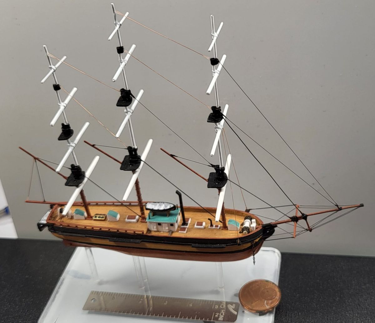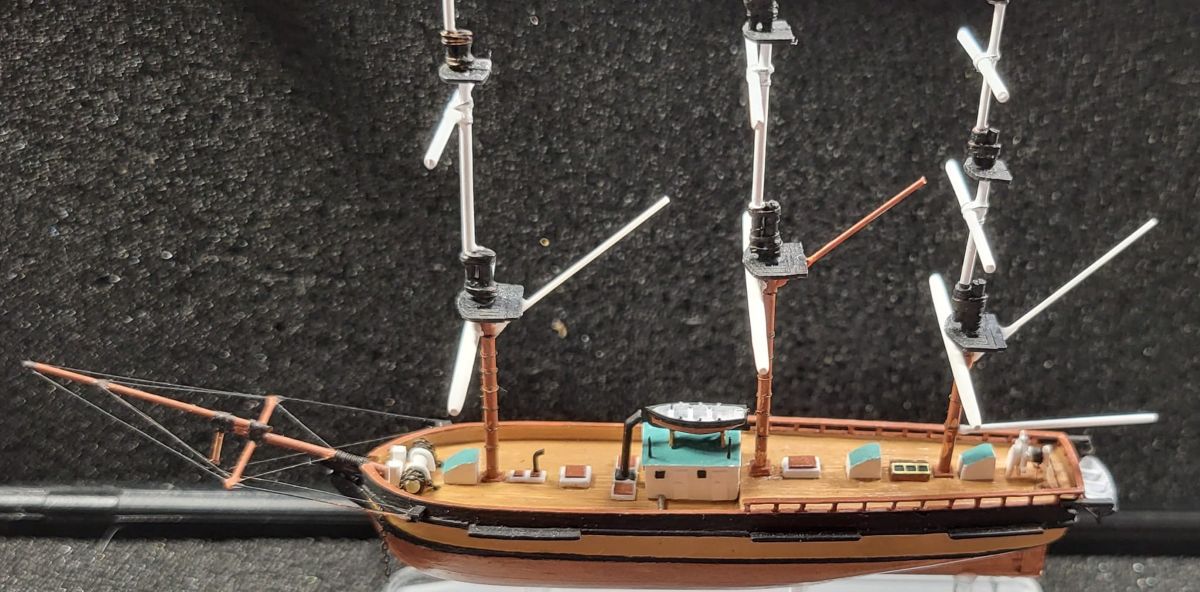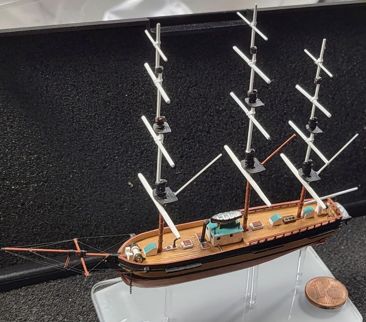 Hallo Wilfred, ich habe mir das beim Aufbau überlegt aber, nur die untere Rahstangen sind aus Plastik, und dieser sind bisschen auf Spitze gebracht, mindestens insofern das die Stärke es zu last, es ist ja so Klein das es unmöglich ist 100% Real zu machen.