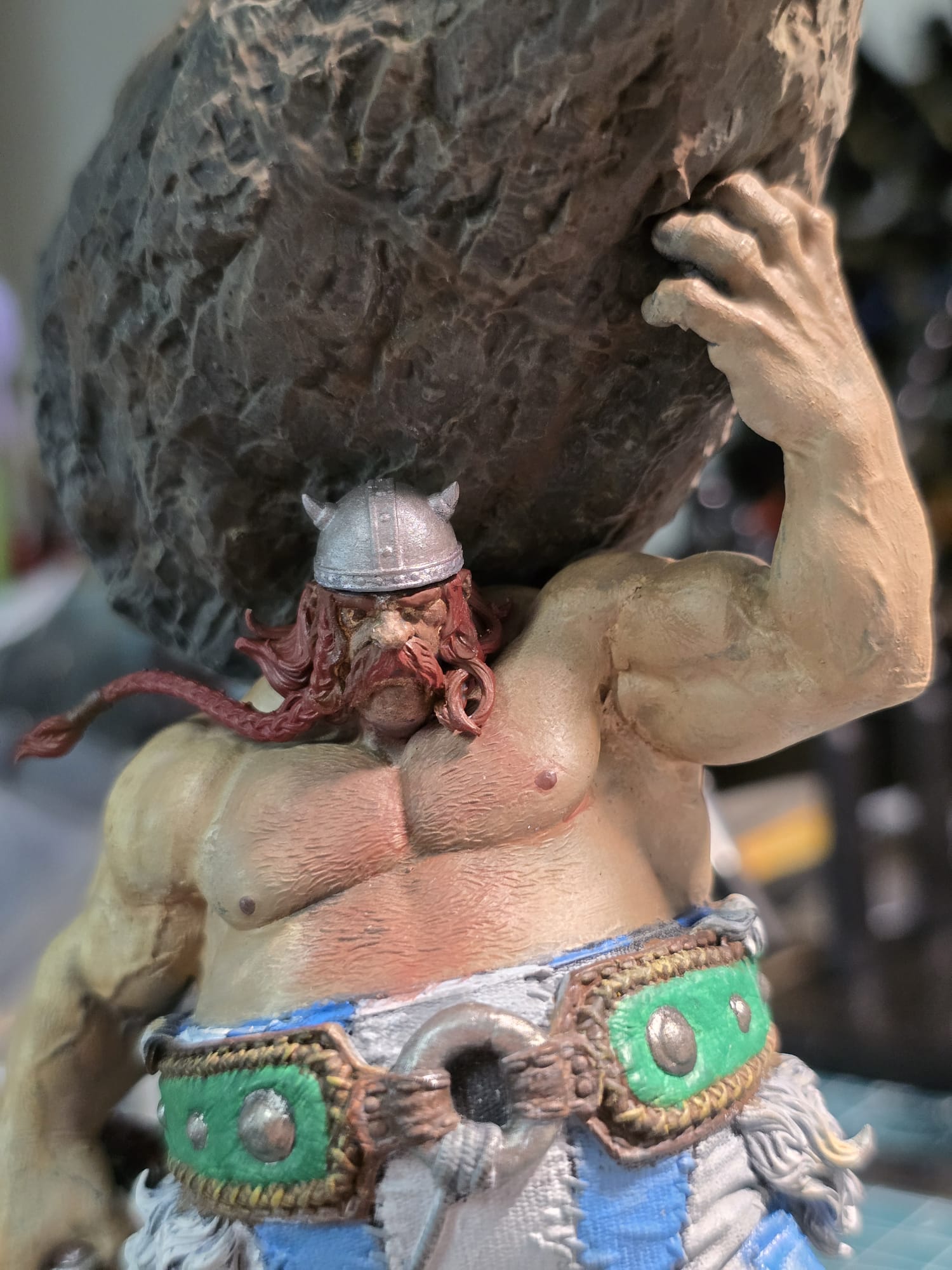 Nein, ist es nicht. Ich habe versucht einen Mittelweg zu finden.... abgerotzt, aber nicht versifft 😜🤣. Bliebe man bei realistischer Bemalung, müsste man ja auch noch Blut da rein bringen. Ich finde, es passt schon so vom Ansatz her. Soll ja auch "gut" aussehen auf dem großen Asterix und Obelix ...