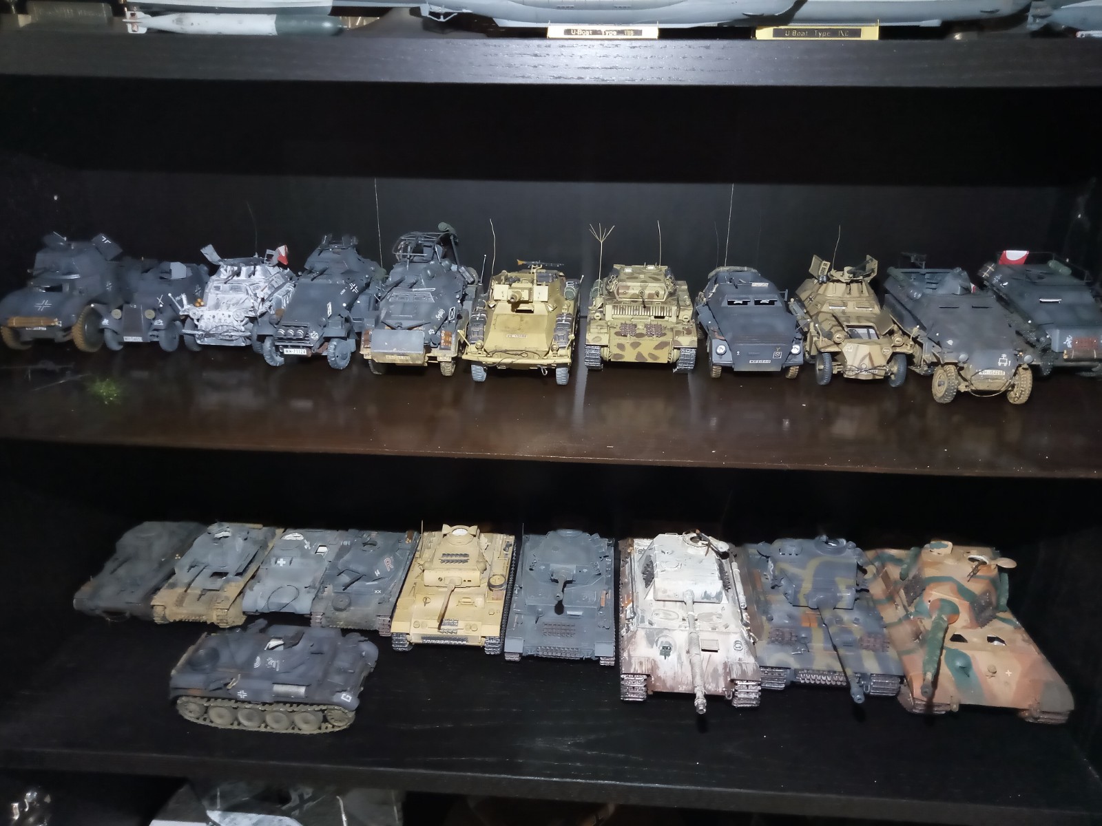 Meine fertigen Modelle befinden sich alle gut verpackt in Plastikboxen in der Garage an der Rückwand. Ist so einfacher zu händeln wenn man mal zum Treffen fährt.