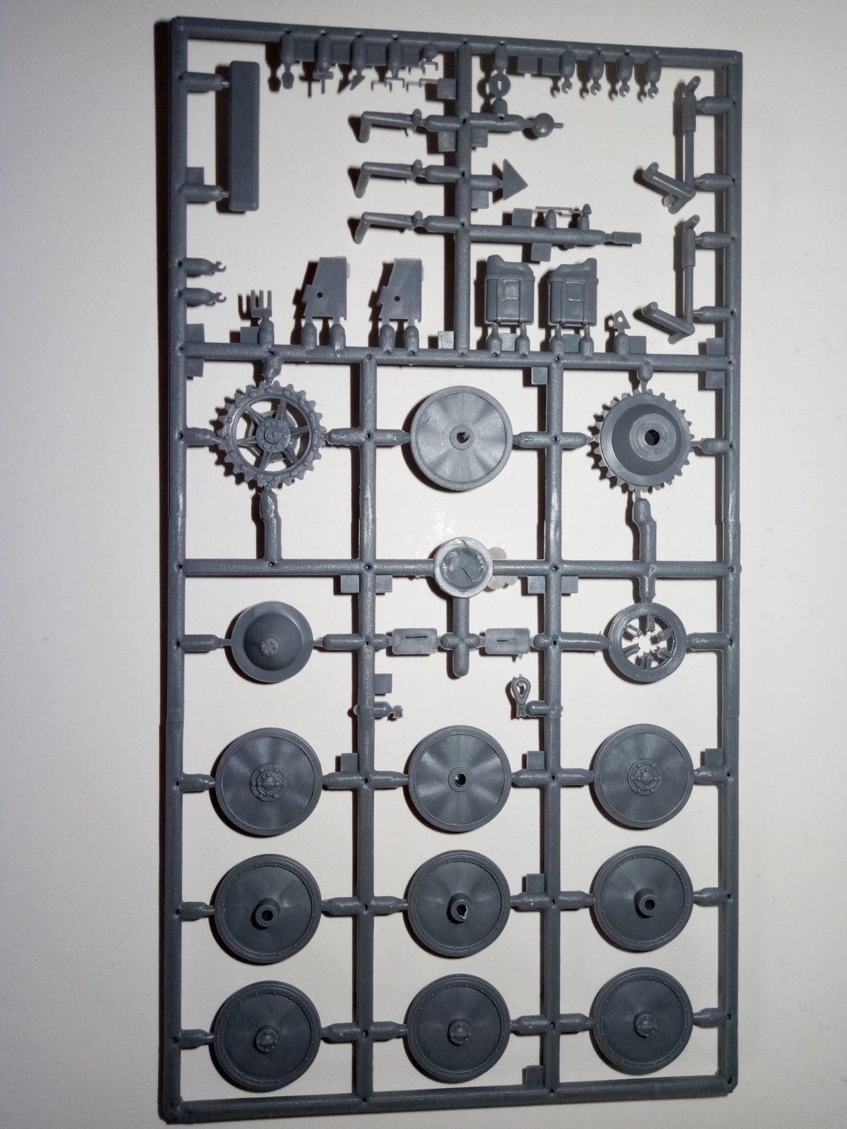 Die rund 414 Einzelteile sind auf 12 Rahmen aufgeteilt, wobei 2 doppelt (Laufwerk)