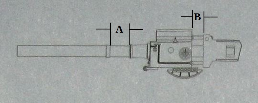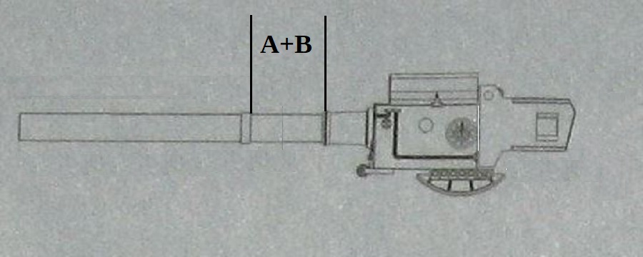 2. Wenn nun der Verschluss wider nach vorn läuft vergrößert sich A um B der Abstand zwischen Wiege und dem Stützring. Das wirkt dann sehr lang bei dem Schattonrohr.