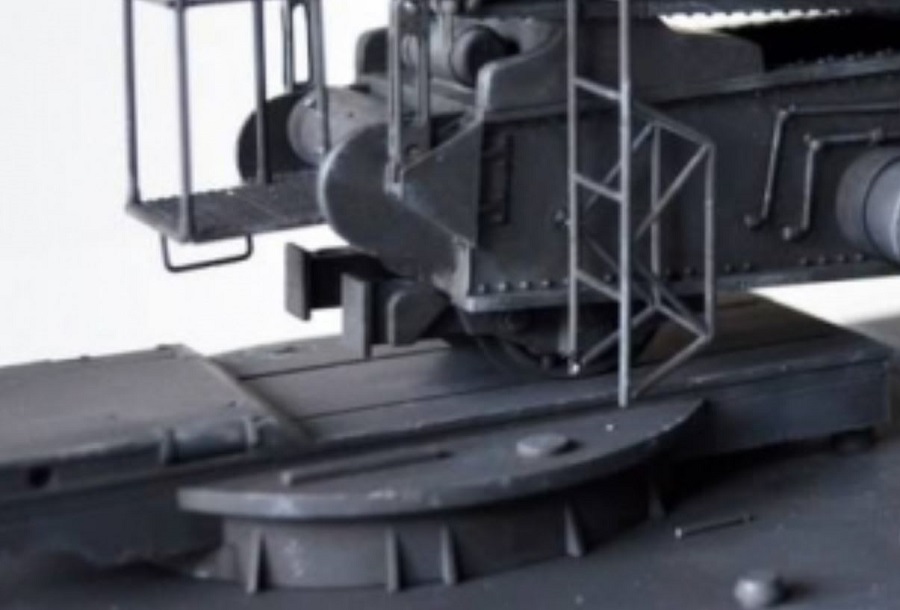 Auf diesem Originalfoto sieht man das Teil links von der Leiter, ganz unten. Man sieht deutlich den Einschnitt und das Dreieck links davor. Es handelt sich um drei Dreiecke, eins in der Mitte und das vordere welches deutlich zu sehen ist und natürlich das ganz hintere welches nicht zu sehen ist. Ich finde es Super das dieser Einschnitt beim Modell vorhanden ist. Obwohl er ja nicht nötig wäre, weil die Dreiecke ja am Modell fehlen. Und jetzt schaut wie es eingebaut werden soll