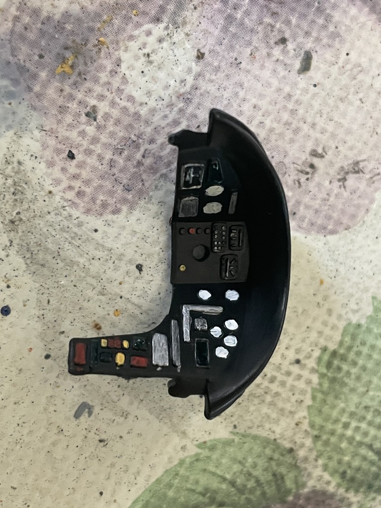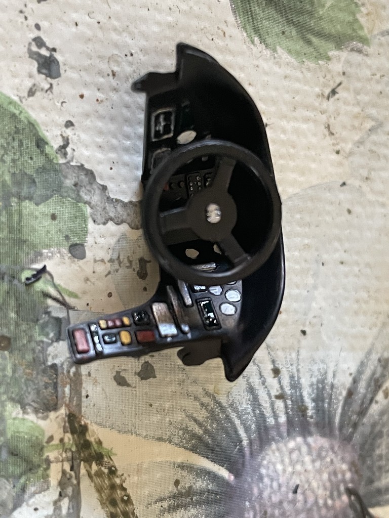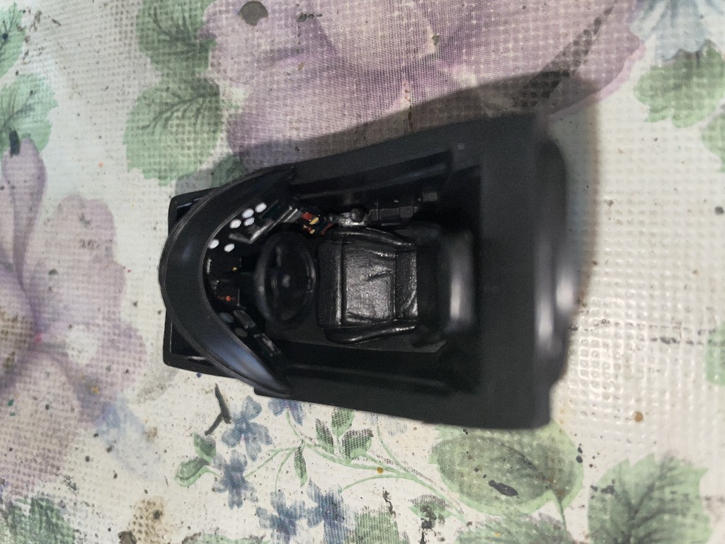 Dann musste nur noch der Rest des Cockpits zusammen gesetzt werden. Es kam auch ein kleiner Stuerknüppel in die Schale und ein toller strukturierte Sitz hinzu.