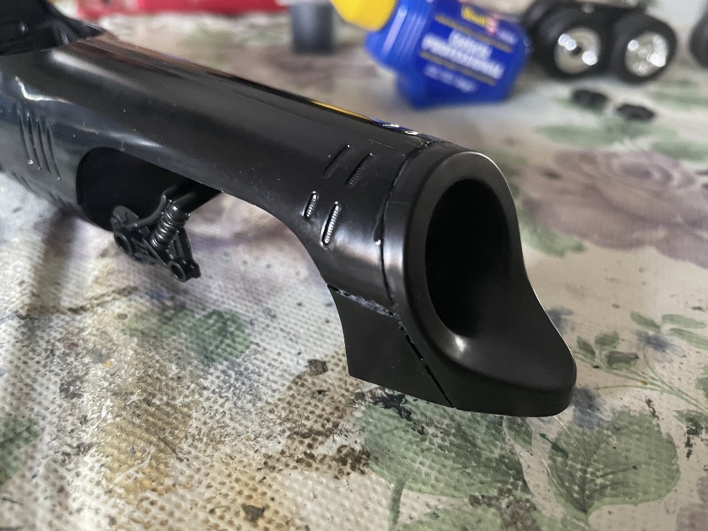 Jedenfalls scheint aber das Seidematte Schwarz sehr gut zur Batmissle zu passen, es wird hier langsam Fertig.
