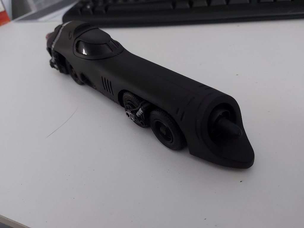 Viel zum Vorbild kann man eigentlich nicht sagen. Die Batmissle war als Fluchtfahrzeug im damaligen Batmobile integriert und wird durch ein Düsentriebwerk angetrieben. Allerdings bin ich nun gar kein Batman-Fan und werde da auch nicht tiefer in die Materie eingehen, dass können andere besser. Übrigens habe ich den Thread bei Fahrzeuge (Zivil) eröffnet, da es tatsächlich noch das Filmfahrzeug gibt und damit nicht völlig erfunden ist (und für SciFi, fande ich es irgendwie auch nicht ganz passend)