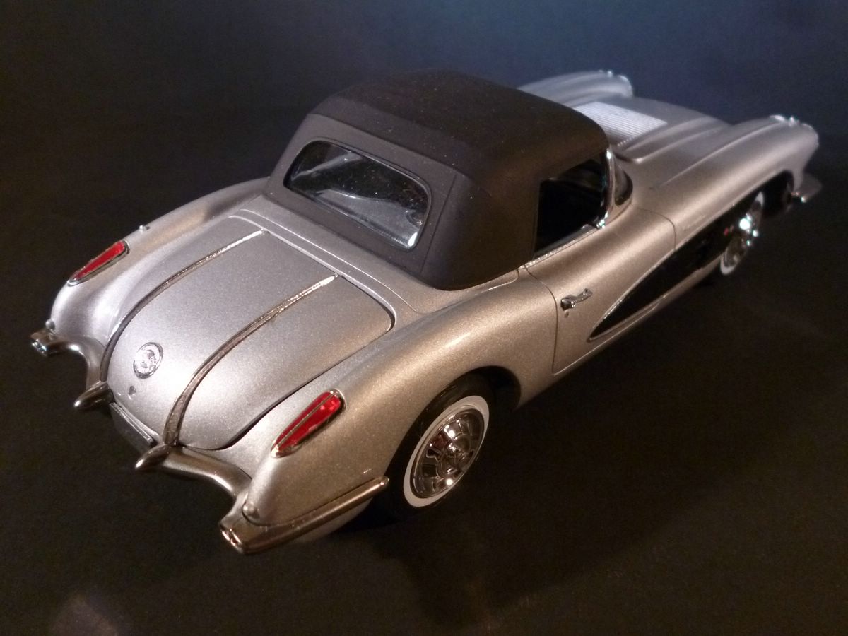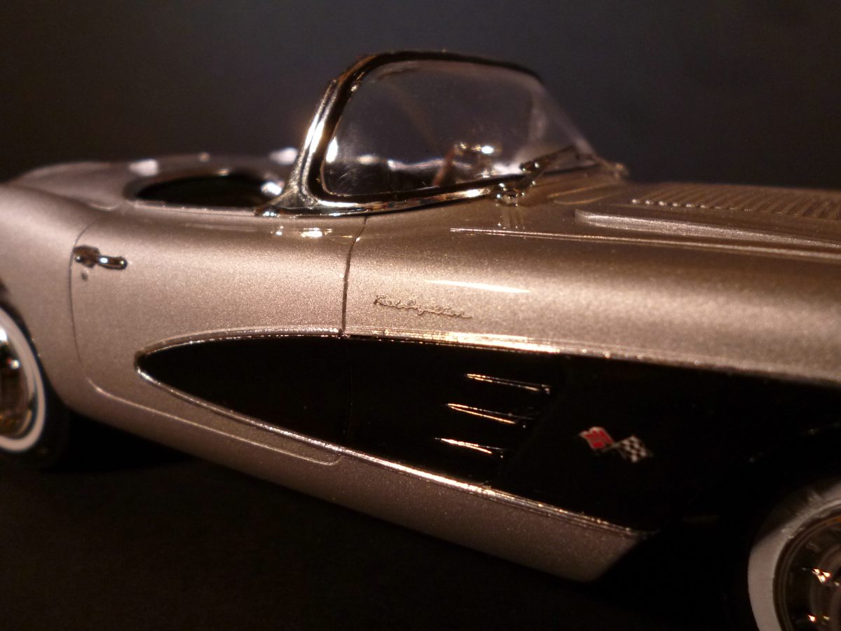 Mit dieser C1 gesellt sich eine dritte Corvette der ersten Generation in das Regal. Die Unterschiede zur 1957er Corvette sind deutlich. Wie ziemlich alle Amerikaner aus dem Jahre 1958 wurde die Corvette ebenfalls mit Doppelscheinwerfern versehen. Waren diese doch erst ab 1958 gesetzlich erlaubt. Schon aufgefallen? Ziemlich alle Hersteller veränderten ihre Fahrzeuge im Jahre 1958 an der Front