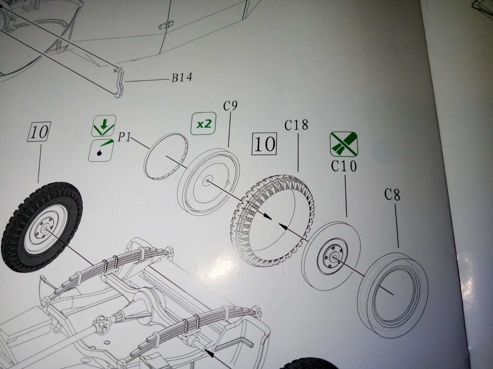 Die Reifen wurden geklebt, diese bestehen jeweils aus gleich 5 Teilen.