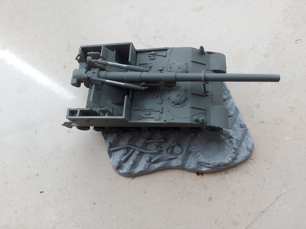 Schwächen hat der Bausatz doch einige. Der Sporn und die Heckrampe fallen ständig aus der Halterung und halten recht schlecht. Das Geschütz lässt sich nicht bewegen und die Dioramenplatte ist zu klein.