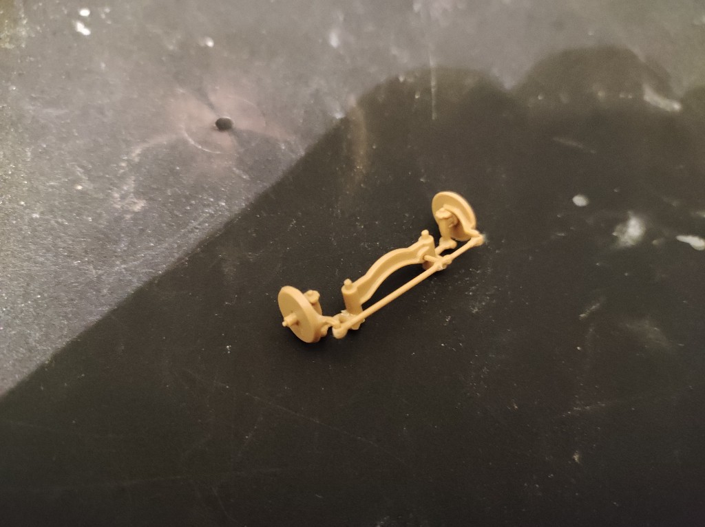 Die Vorder Achse ist auch zusammen gesetzt, hier musste aber der stark ausgeprägte Grad entfernt werden. Die Achse ist leider nicht einschlagbar