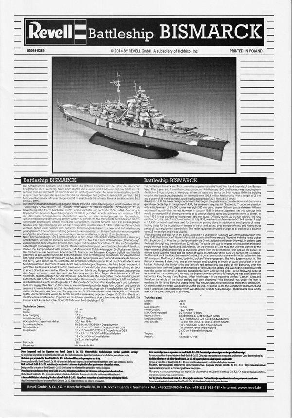 In Erinnerung an das Gefecht in der Dänemarkstrasse im Rahmen des Unternehmen „Rheinübung“, wo sich 1941 das Schlachtschiff Bismarck und der Schweren Kreuzer Prinz Eugen mit dem Schlachtkreuzer HMS Hood und dem Schlachtschiff Prince of Wales duellierten, hat die Firma Revell zum 80. Gedenktag diesen Frühling in einem Doppelpack sowohl Bismarck wie auch HMS Hood als Limited Edition aufgelegt.
