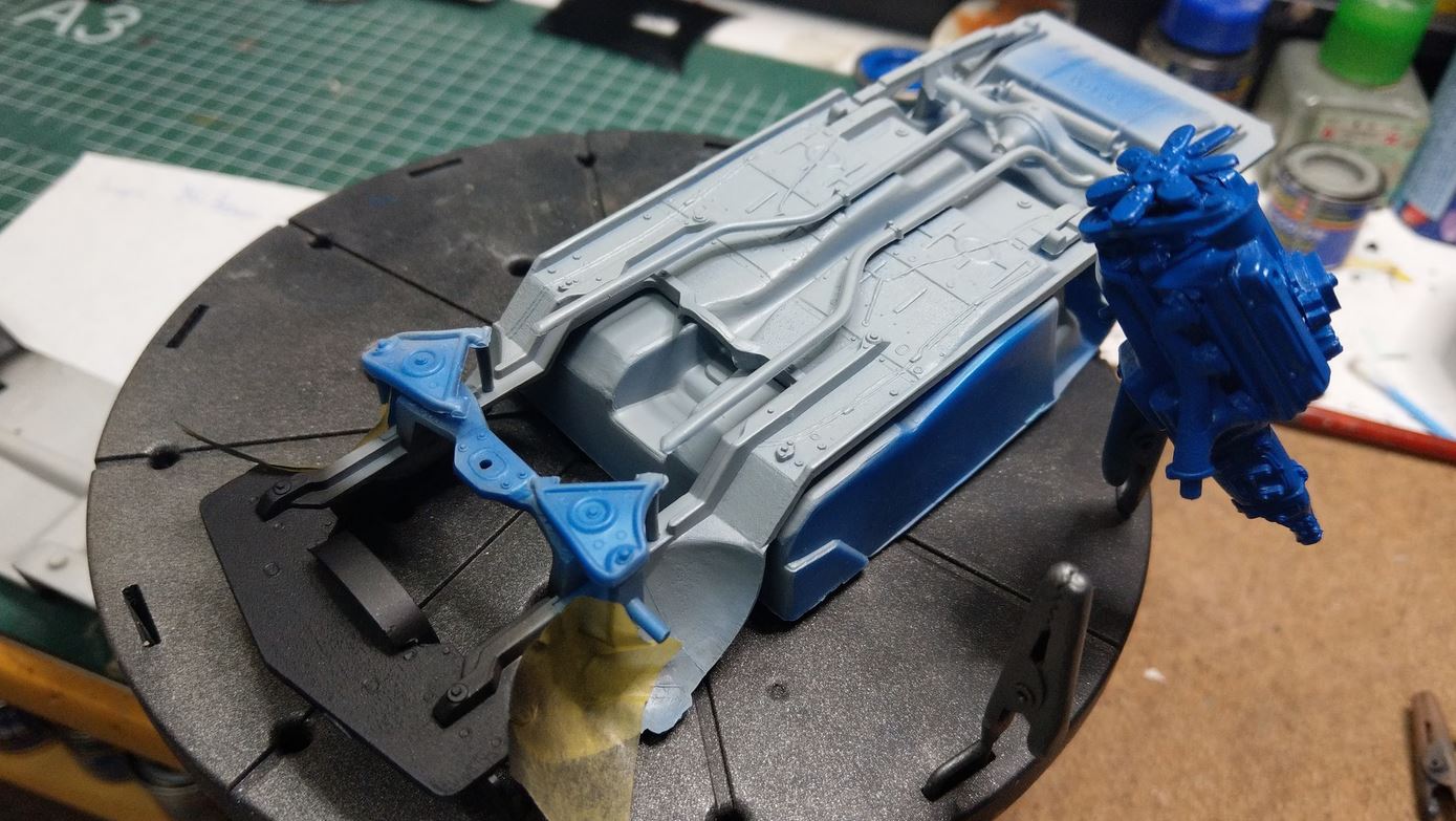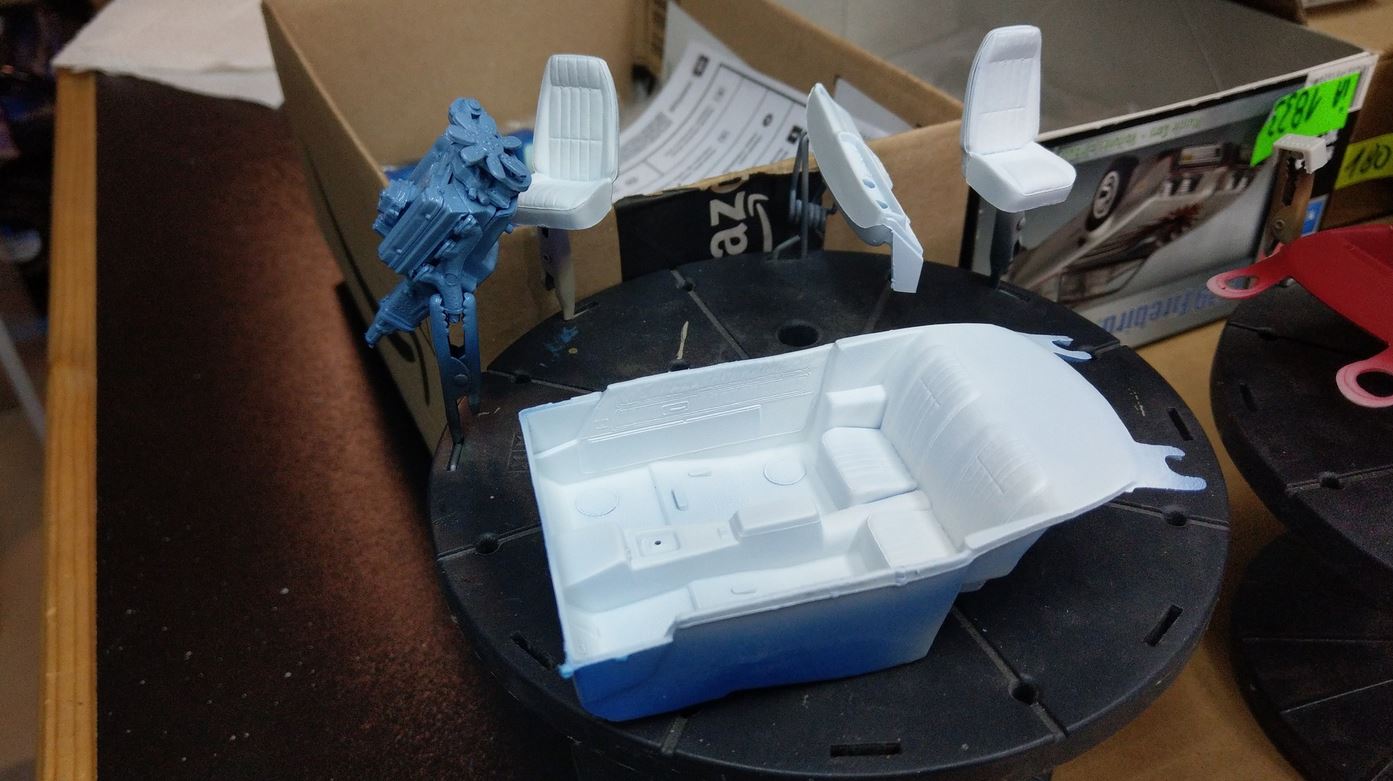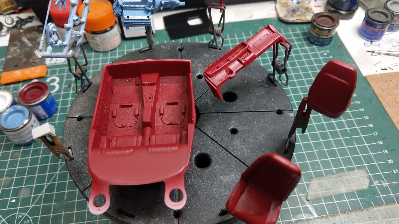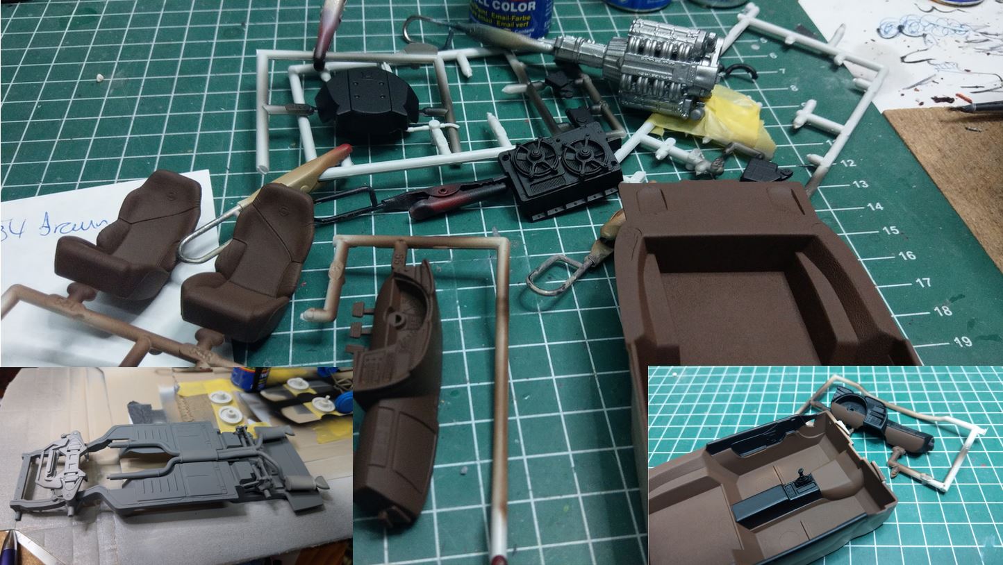 Das Chassis ist fertig lackiert und die Innenausstattung auch. Geht also an die Detailbemalung.