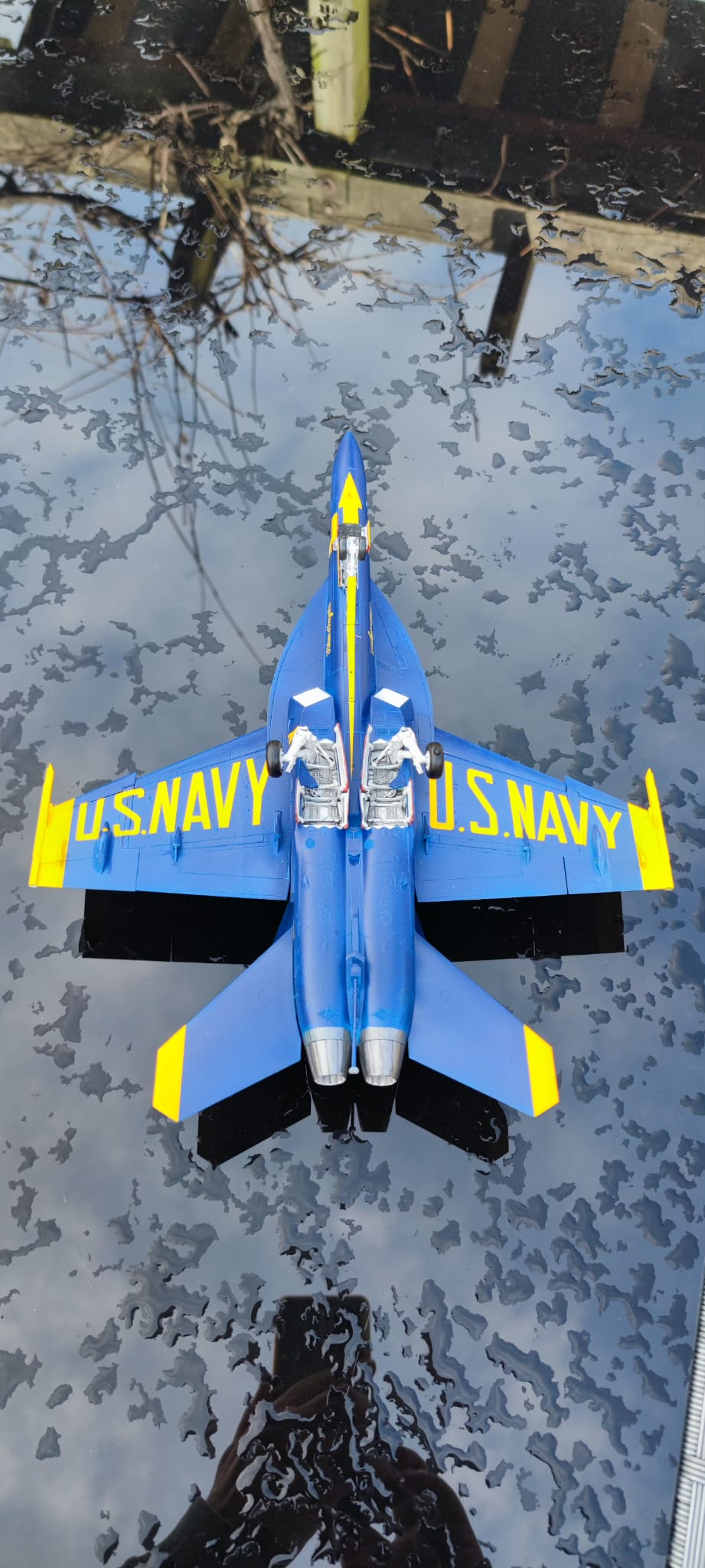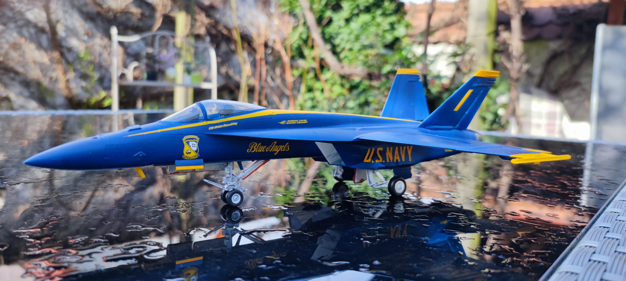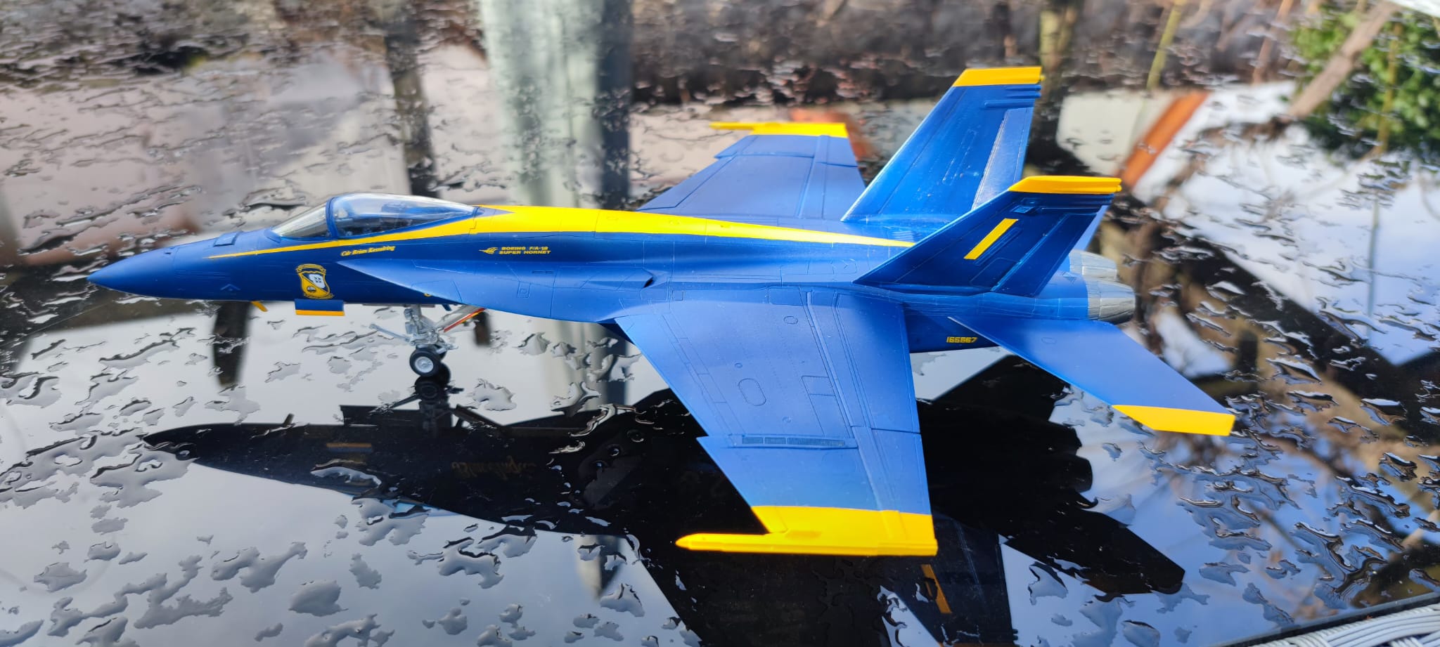 Die "Maverick" ist noch in Arbeit, die Blue Angels dagegen ist fertig. Alles bis auf das Logo und den Blue Angels Schriftzug mit der Airbrush lackiert. Washing im Fahrwerk hat ganz gut geklappt. Auf dem Blau sieht man nix mehr davon. Das war enttäuschend 😞