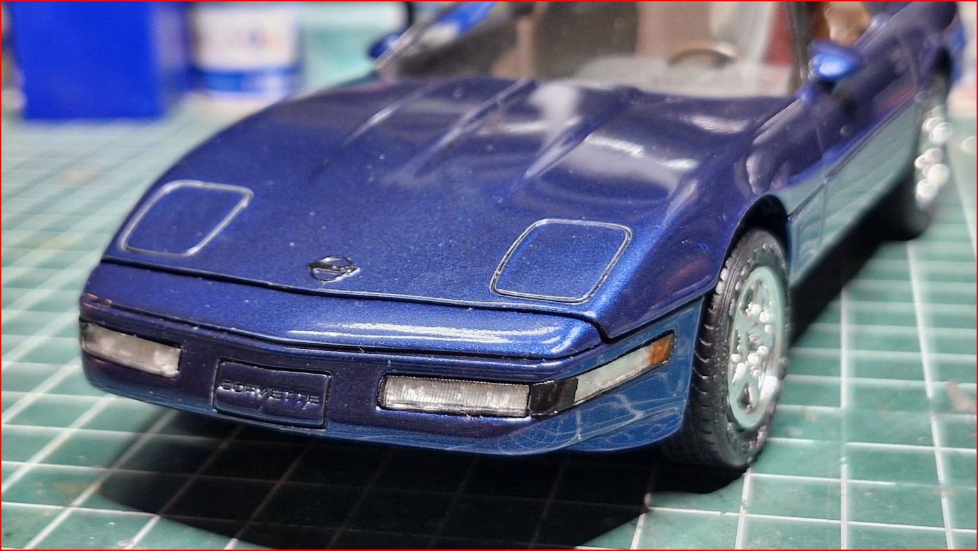 Die Corvett ist fertig zur Endmontage. Mit den Lampen in der vorderen Stoßstange bin ich zufrieden. Als Letztes werde ich am Ende eine leichte Schicht Tamiya Smoke drüber geben um die ein wenig abzudunkeln. Wenn ich hier so sitze über lege ich ernsthaft, für die nächsten C4 (zwei warten bereits seit längerem) die Reflektoren ebenfalls nachzubauen um etwas mehr Tiefe zu bekommen. Ich habe da schon eine Idee.....