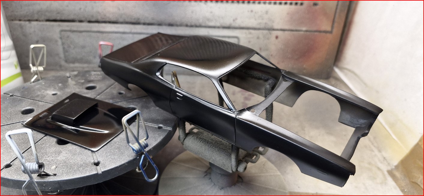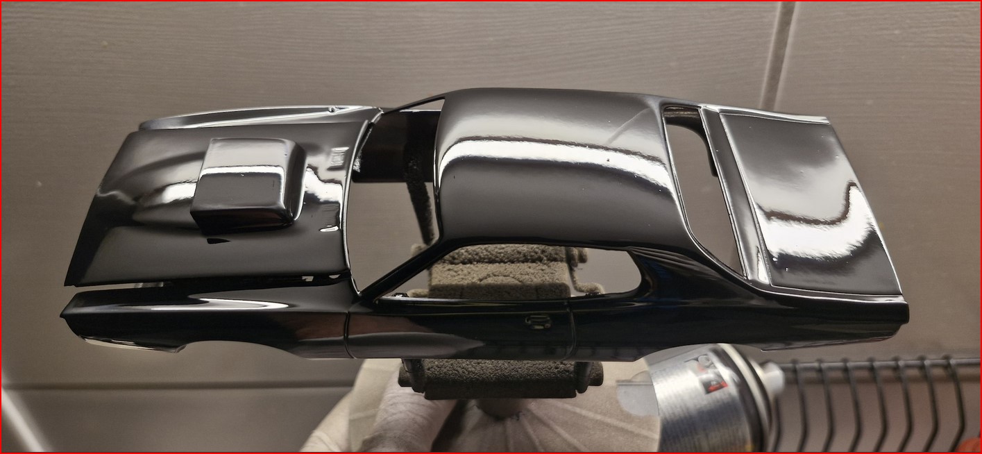 Ebenfalls grundiert, nass geschliffen und Dosenlackierung drauf. Eine klassische Farbe meiner Meinung aus den 1970er. Die habe ich "übrig", als ich für meinen 1977er Firebird die richtige Farbe suchte. Es könnten also zukünftig noch mehr Autos in türkis-grün-Farbtönen in mein Regal rollen. Die Lackierung lief bisher richtig gut. Zwei Schichten Klarlack, keine Einschlüsse, wie immer keine Politur.