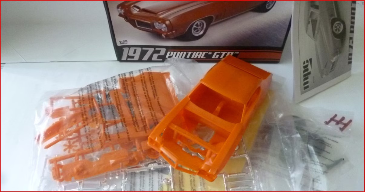 Als zweiten Kandidaten habe ich einen 1972 Pontiac GTO auf dem Tisch. Nur für zwischendurch. Aus dem Bausatz könnte man soviel mehr rausholen, weil er doch recht einfach konstruiert ist. Habe da einen Baubericht über dem Teich gefunden, der mir eigentlich sagt: bau ihn nicht. Aber was solls. Gekauft, weil ich ihn als Wichten bauen "muss" und ich dann feststellte, dass der GTO 1973 (das Motto ist dieses Jahr "Baue was aus deinem Geburtsjahr") komplett anders ausschaut und ich den bei meinem Stammtisch so nicht durchmogeln kann. Deshalb dann der 1973 Charger