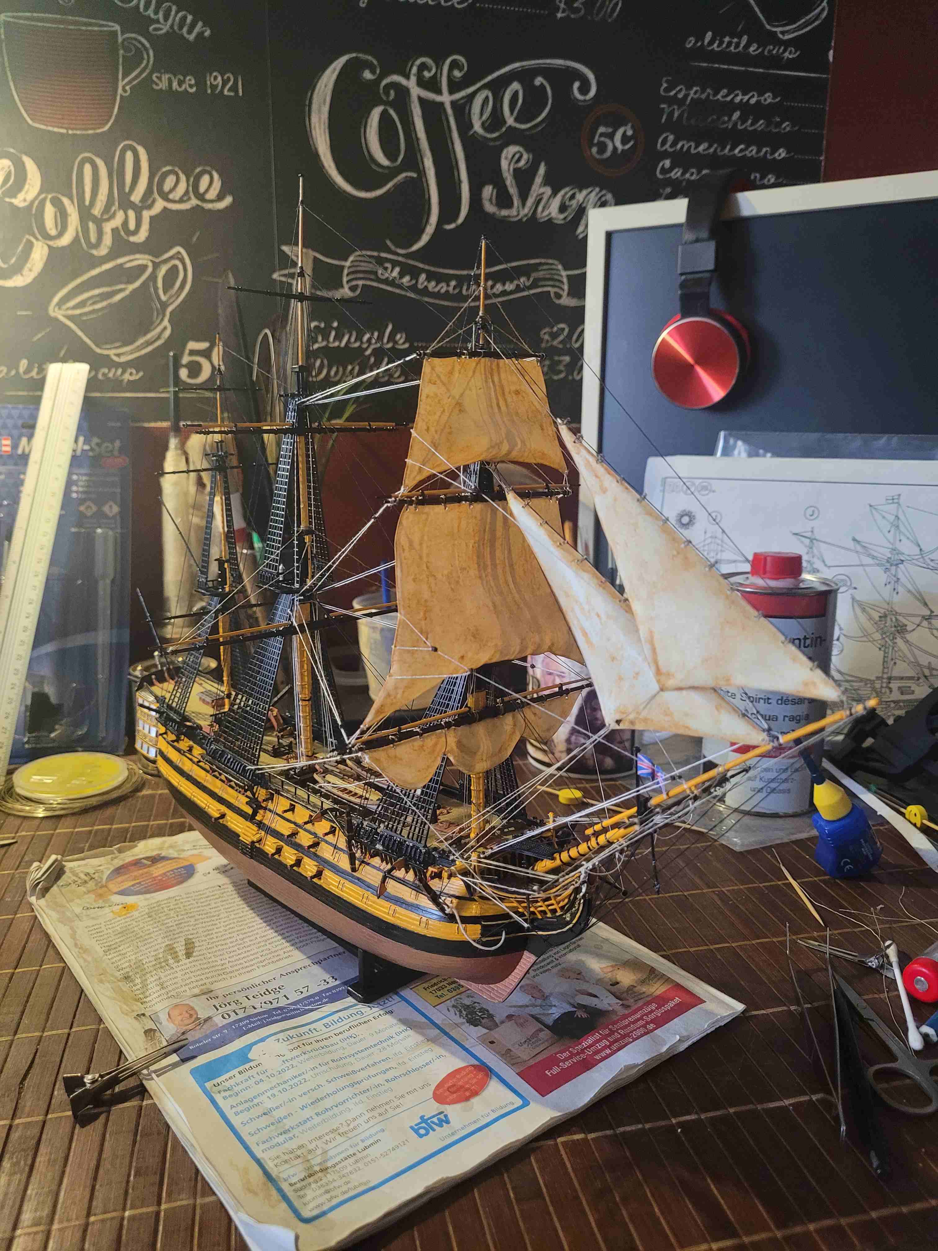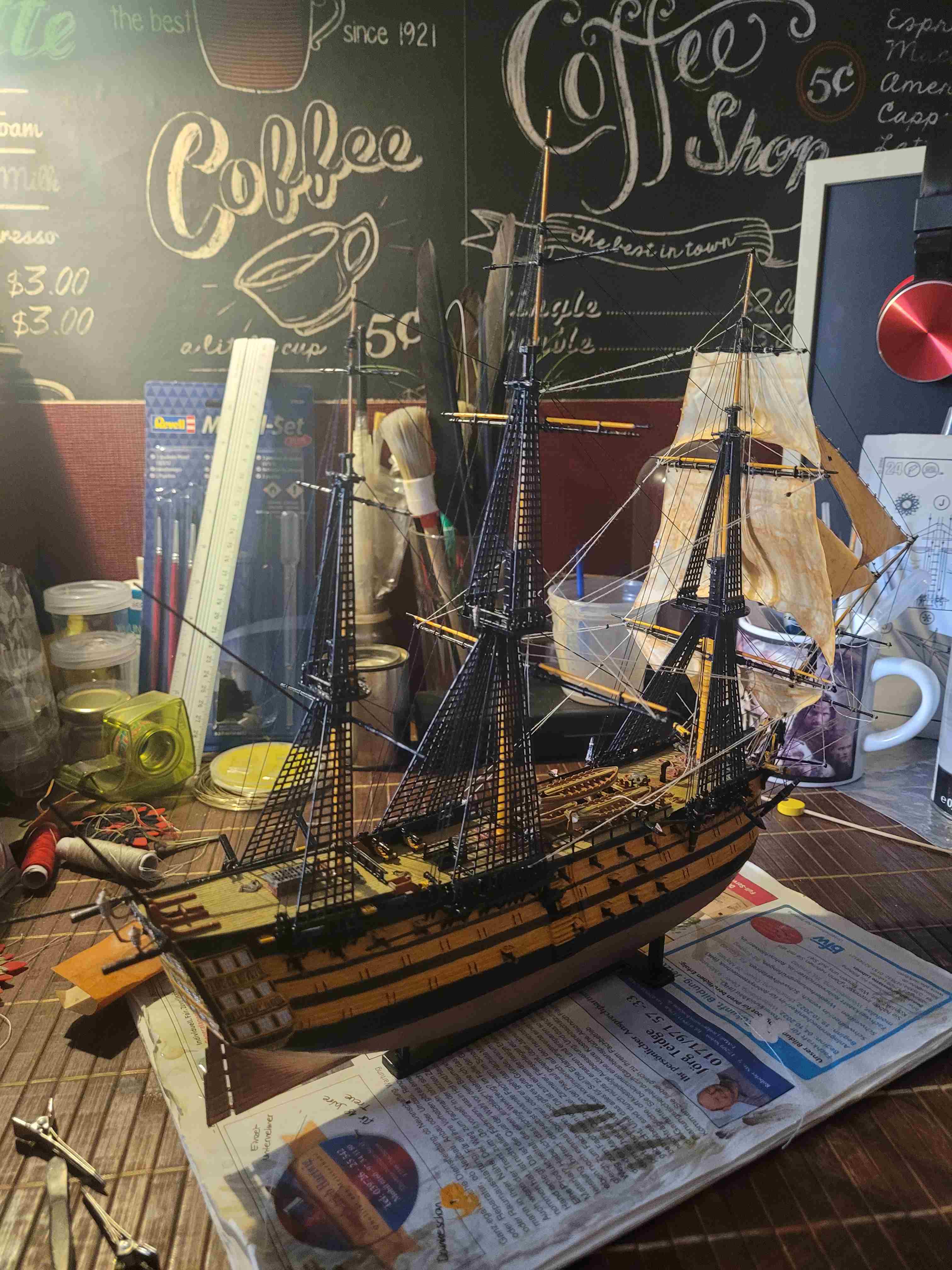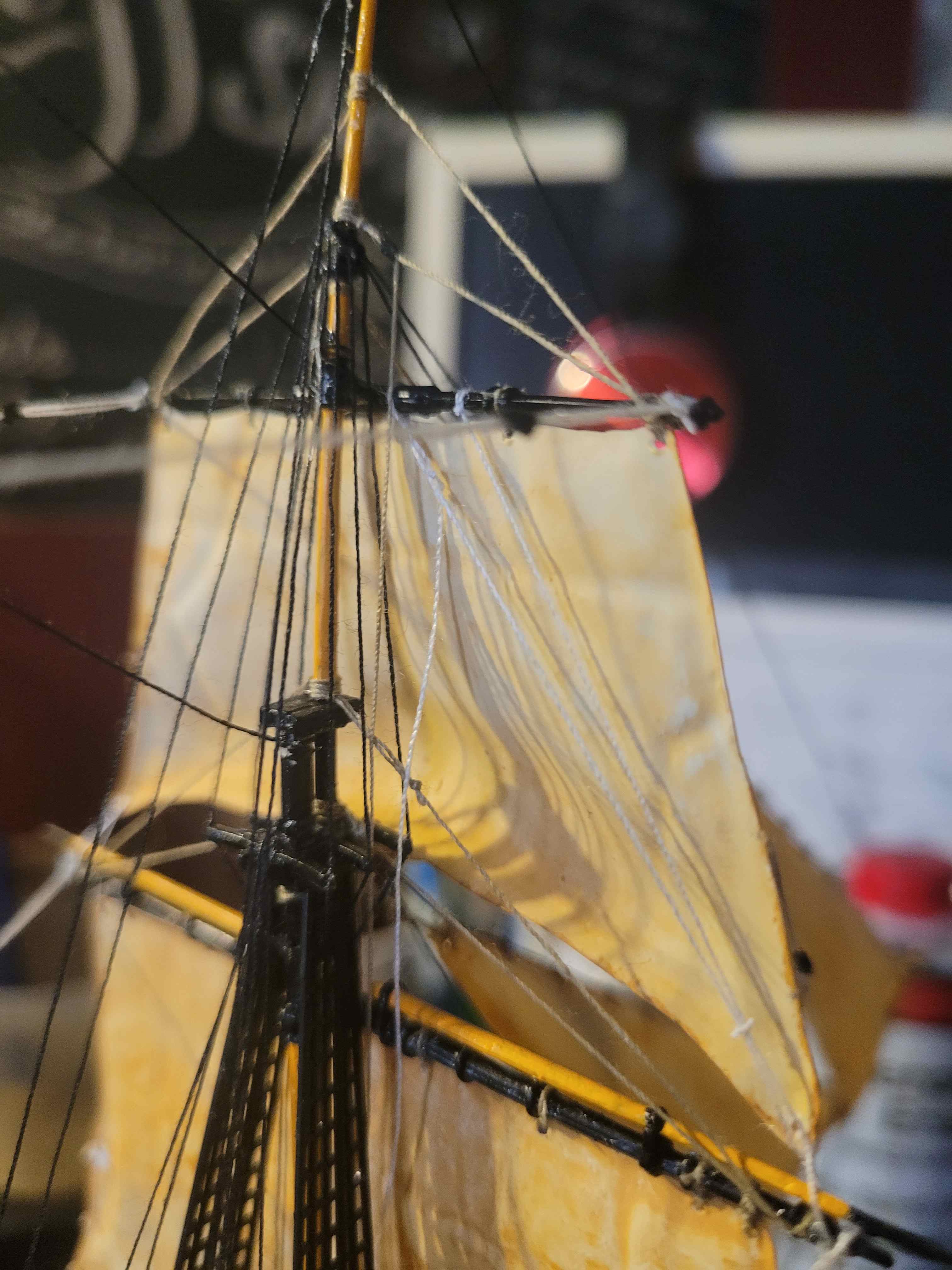Und hier werkel ich momentan dran. Ich bin leider der Seemannssprache nicht mächtig, deswegen nenn' ich das mal "Seilzüge hinter den Segeln" :oops: