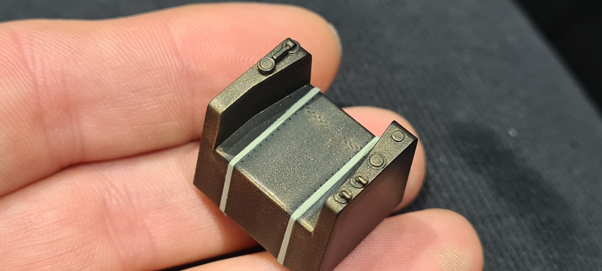 Zunächst der Unterteil/der große Tank. Schwarz lackiert