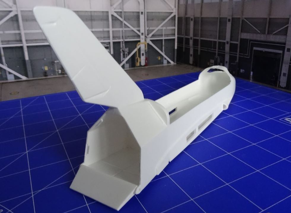 Mit dem Rumpf habe ich weitergemacht, zunächst nur die Hälften zusammen geklebt, das Rear Paddle und die Rückwand der Nutzladebucht angebracht.