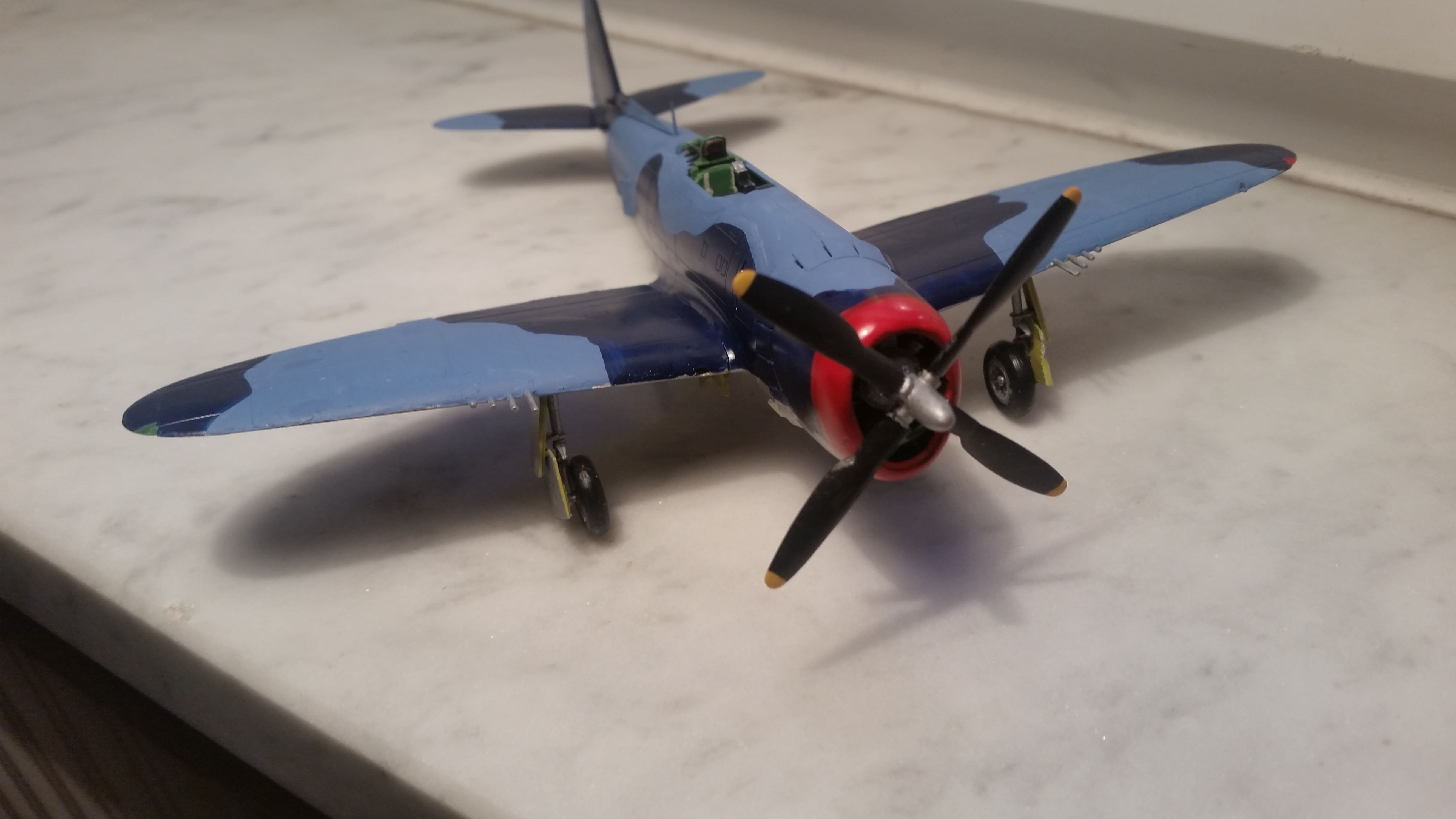 Die Thunderbolt ist fertig. Ein sehr schönes Modell. Es gibt nichts was nachgebessert oder gespachtelt werden muß. Auch für Anfänger ein prima Modell.Die Decals sind Klasse.Die Kabine habe ich offen dargestellt.Etwas zur Farbe....ich bemale die Modelle ungern mit verdünnten Farben. Es nervt mich, wenn auf den gewollten matten Farben plötzlich glänzende Farbanteile sichtbar werden. Das trifft nicht bei jeder Farbe zu aber bei vielen und sieht einfach Sch... aus. Da öffne ich lieber stundenlang ein Töpfchen mit viel zu dünner Farbe, die dann eine festere Konsistenz bekommt und habe dann einen schönen gleichmäßigen Anstrich...zumindest nach dem zweiten Mal. Farbe muß für mich decken und dann ist es mir lieber, mal etwas zu dick aufgetragen zu haben als ständig diese matt-glänzende Oberfläche anzusehen. (Mit Mattlack bekomme ich das zwar einigermassen ausgebessert, aber man kann es trotzdem noch sehen).