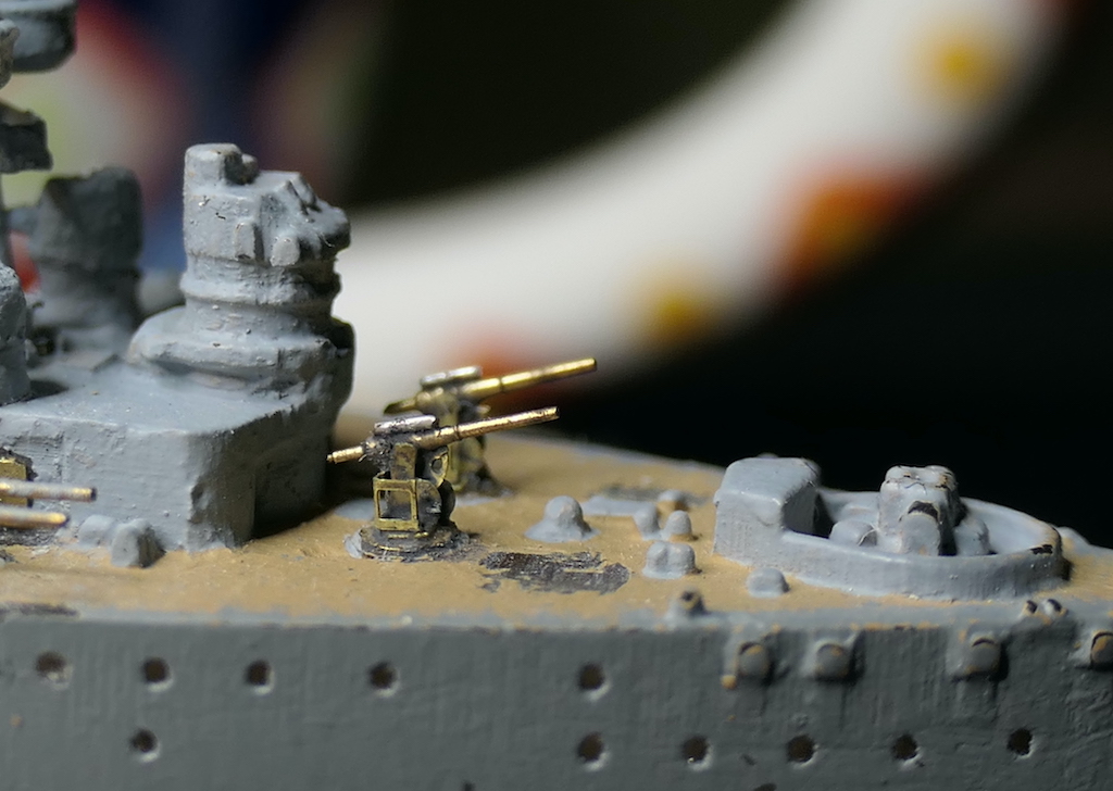 Die 8er PomPom-Geschütze auf dem Achterdeck, der hintere Mast und die mittlere Artillerie sind hier bereits entfernt: