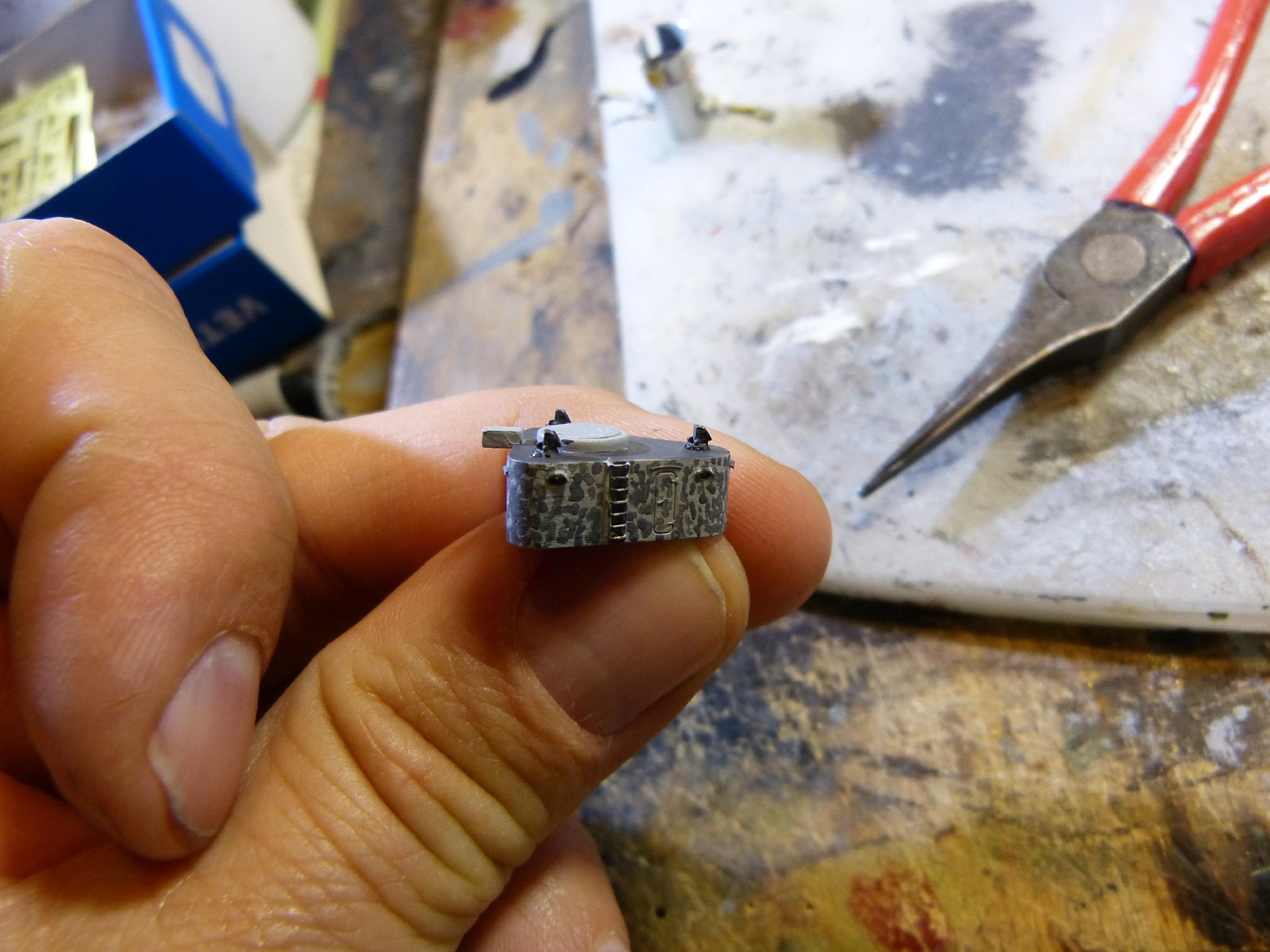 Also TIMOR nochmal neu. Mit einem Feuerzeug war der ganze Aufwand in Null-komma-nix zunichtegemacht, aber ich musste ja 8 Dipole wiederverwenden. Die 4 kleineren nahm ich jetzt von Dragons beigelegten Ätzis, das „Basis-Gitter“ kürzte ich auf korrekte 11 x 6 mm und das Ganze Prozedere nochmal von vorn. Hab jetzt aber aus Frust nicht nochmal die Schritte dokumentiert. Daher nur ein Foto vorweg vom fertigbemalten TIMOR…