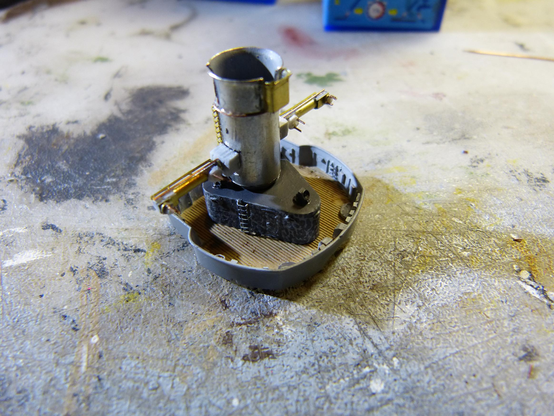 Fertige Admiralsbrücke mit Unterteil verbunden, Kabelkanäle links und rechts mussten gescratcht werden.