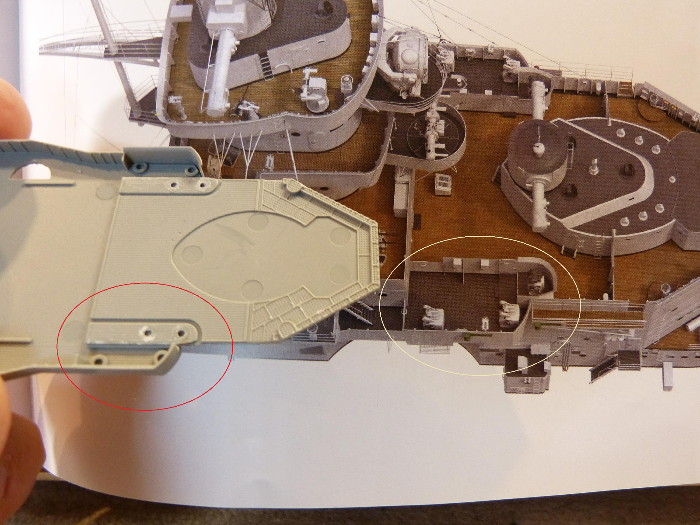 Beim Mittelteil des Aufbaudecks hat Dragon etwas gepatzt, die äußeren Enden an den mittleren 10,5er Drehkränzen sind falsch dargestellt.