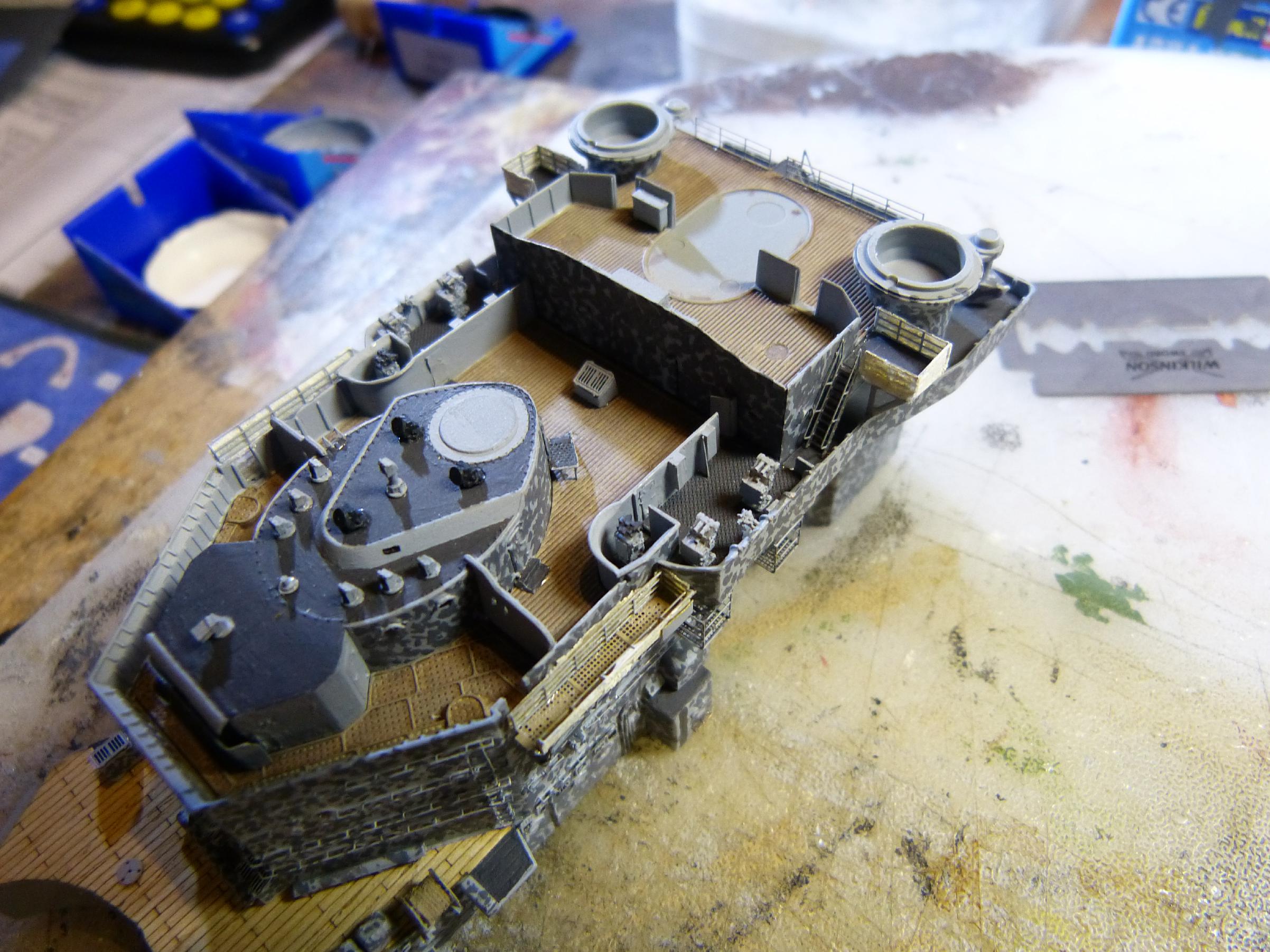 Dann habe ich noch ein bisschen am hinteren Teil des Aufbaudecks gebastelt. Einiges Scratching war wieder nötig…