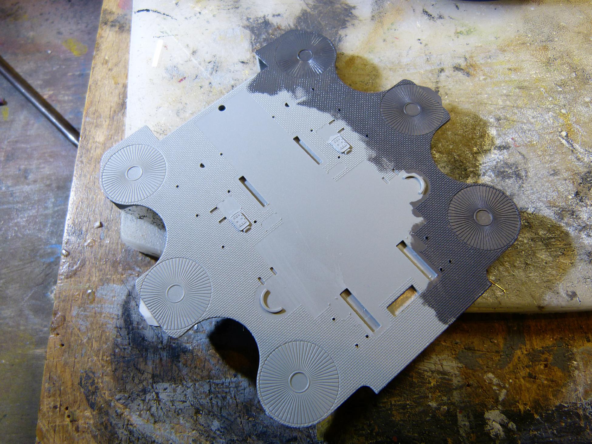 Zuletzt Washing Rumpf seitlich und unten mit stark verdünnter schwarzer Ölfarbe.