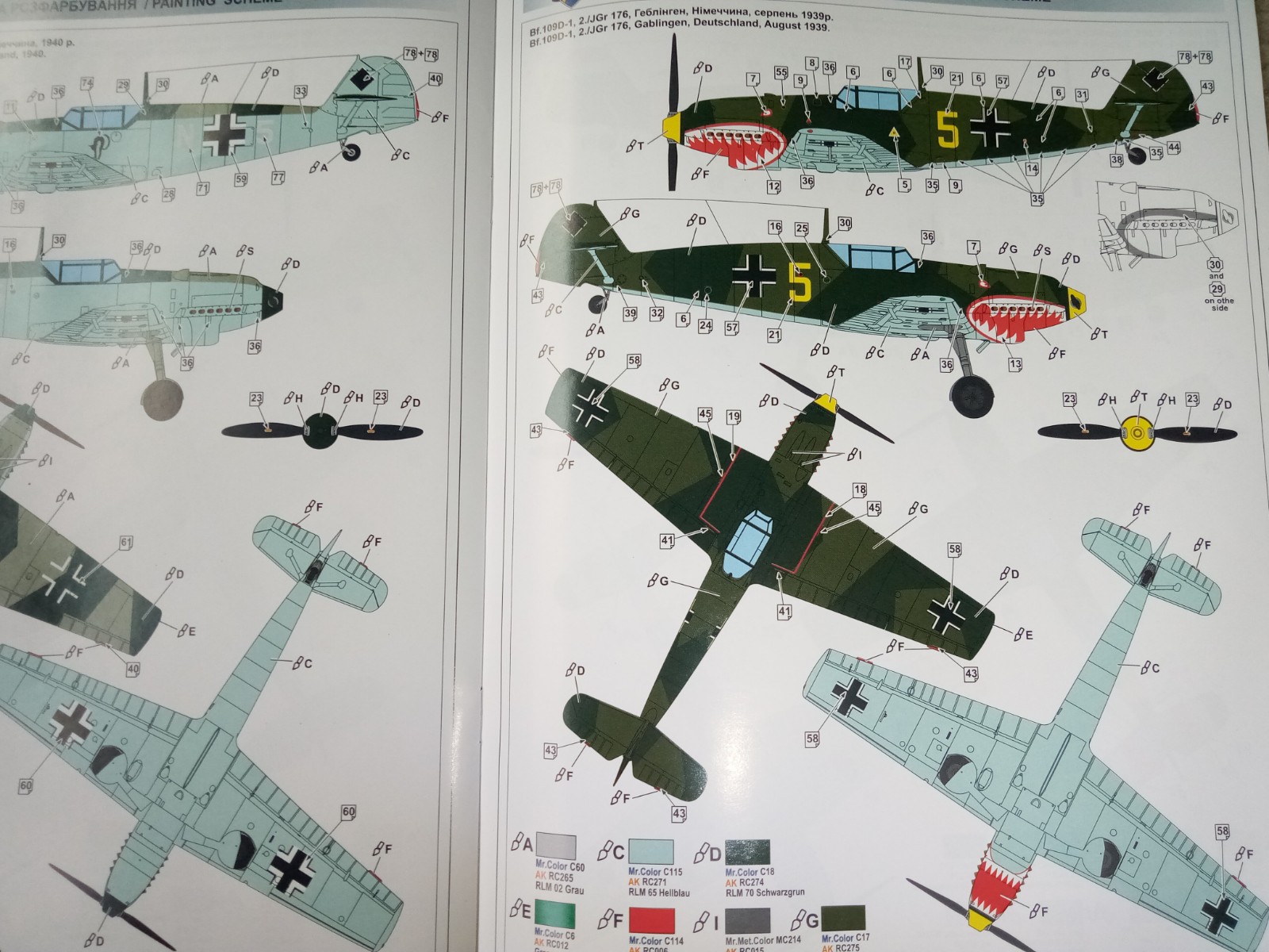 Farbangaben sind in der Bauanleitung in GSI Mr. Color, AK Real Color und generische Farbangaben bzw. RLM Farben angegeben.