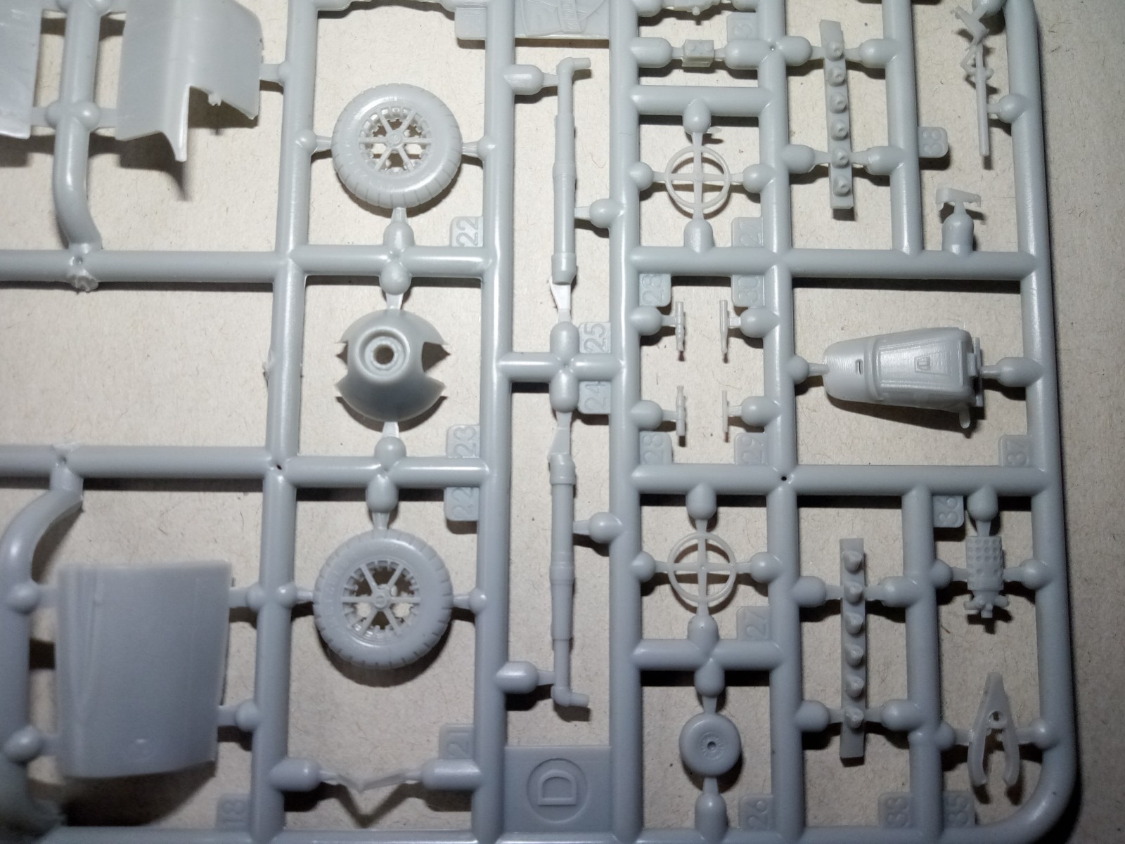 Der Bausatz kommt in 122 Einzelteilen, aufgeteilt auf 6 Spritzrahmen und einer PE-Platine daher.
