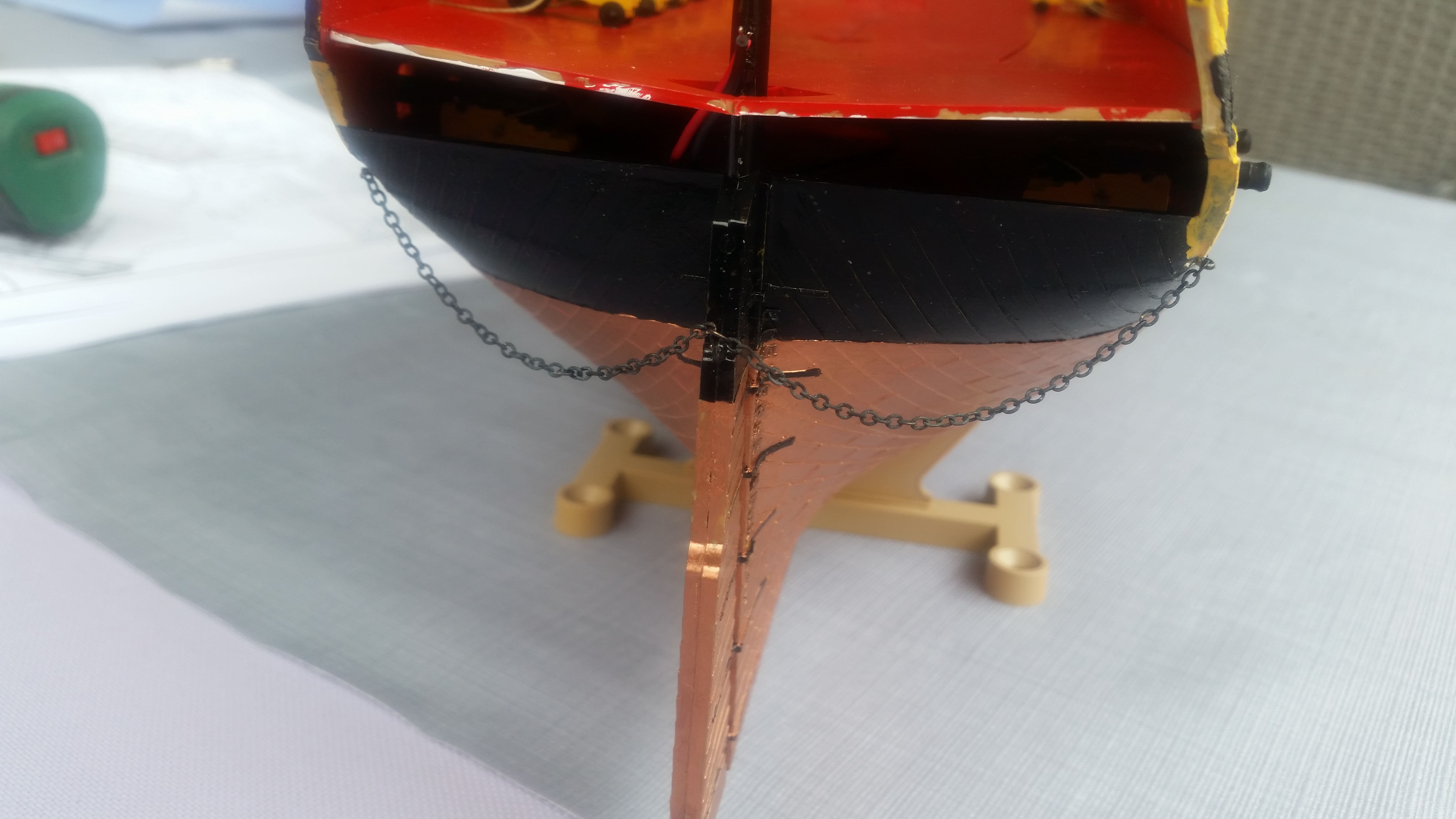 Die Sorgketten sind angebracht und das untere Gallion ist am Bug angebracht. Gruß Ingo
