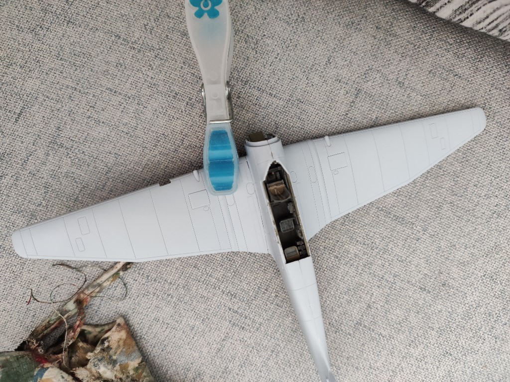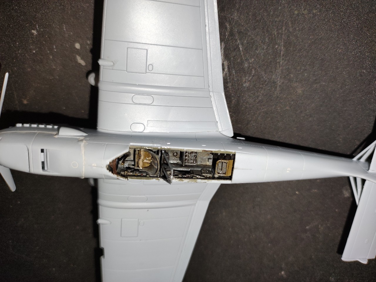 Das Unterteil habe ich auch gleich Ran gemacht und das Bombenzielgerät eingebaut. Leider ist das untere Klarteil angelaufen... Das ist mir ja ewig nicht passiert. Aber ich hab es jetzt so gelassen, man sieht am Ende ohnehin nicht mehr viel von :roll: