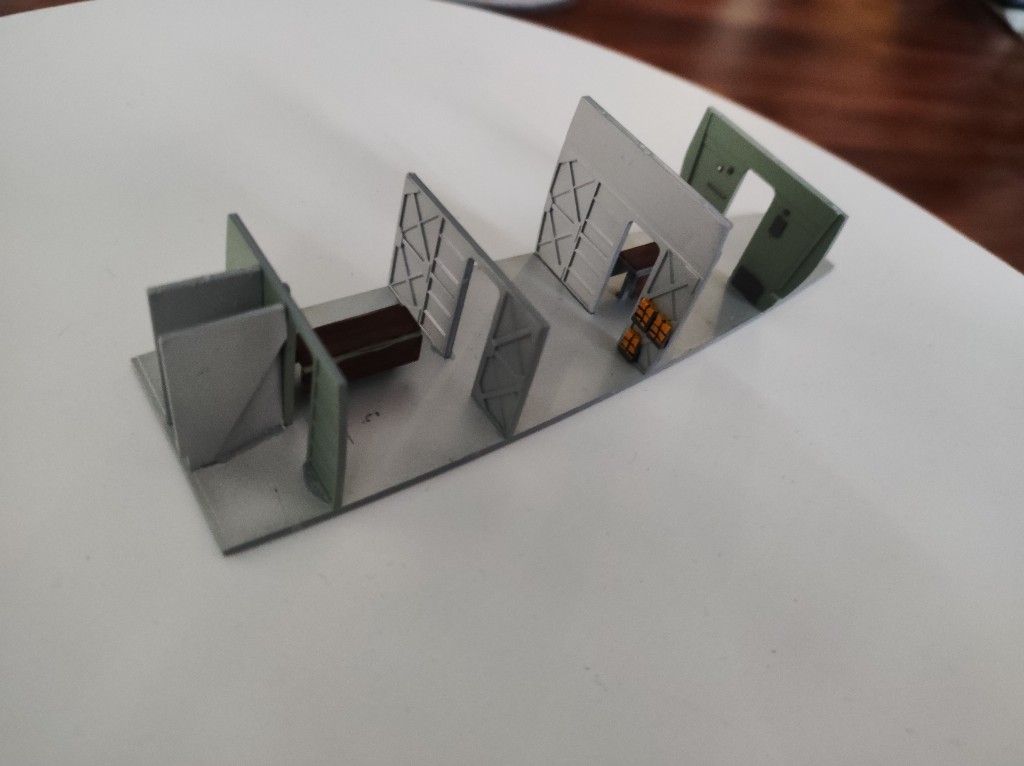 Außerdem ging es am Innenraum weiter. Hier haben wir den unteren Passagierraum, wo Klapptische und Bänke aufgestellt wurden. Letztlich sollte die Sunderland für viele in Seenot Geratene die sichere Rettung sein