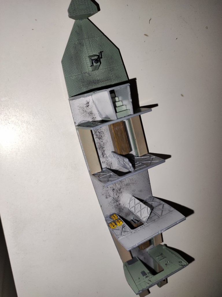 Anschließend habe ich das Ober Deck aufgesetzt. Eine Treppe und eine Leiter verbinden beide Etagen