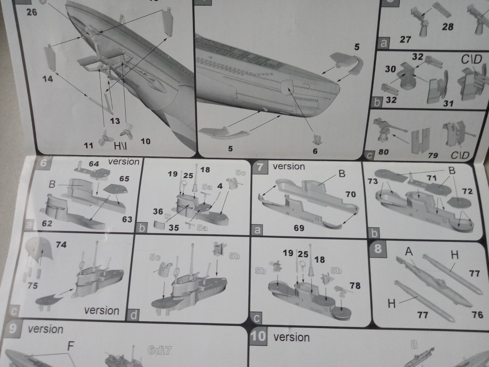 Es können sogar 3 Varianten des U Bootes Typ C aus dem Bausatz hier gebaut werden.