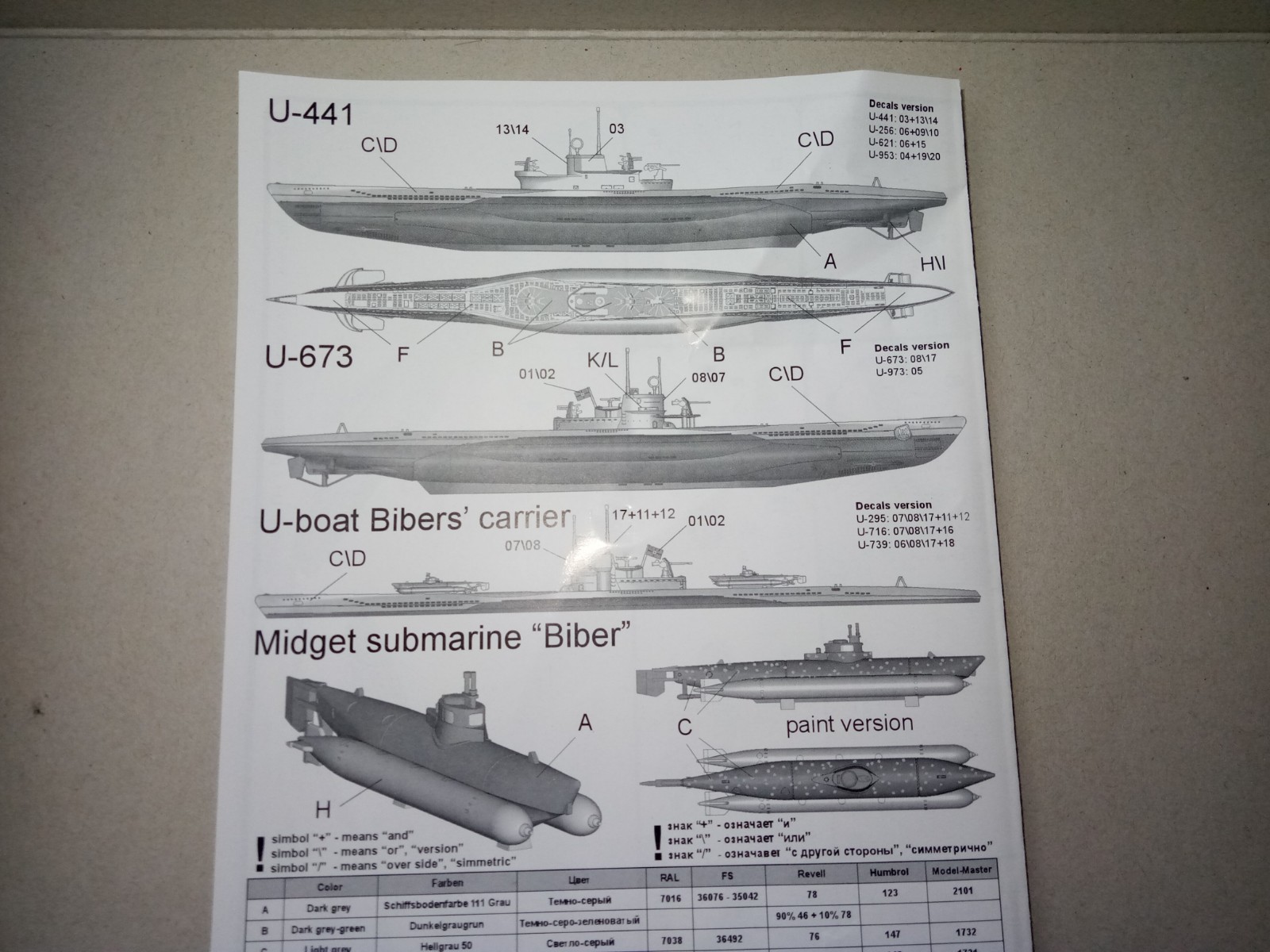 Die Farbangaben in der Bauanleitung, beziehen sich auf RAL, FS, Revell, Humbrol, Modelmaster