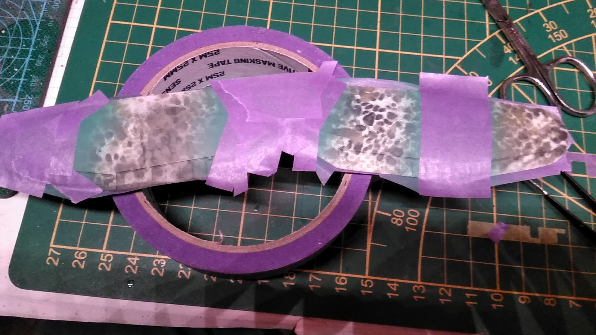 Es ist trotzdem noch nicht perfekt. Beim Abziehen des Klebebands sind auch wieder Partikel der Farbe mit herausgebrochen