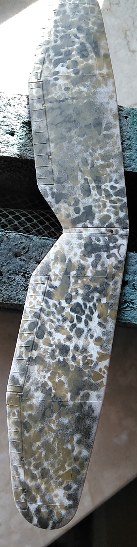 Für die Verschmutzung habe ich schwarze Pigmente genommen. Auf der Unterseite wurden nur Gelb und Balkenkreuz verschmutzt.