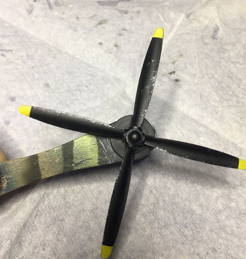 Den Spinner habe ich mit LP Gelb von Tamiya ohne Grundierung direkt auf Plastik gesprüht.