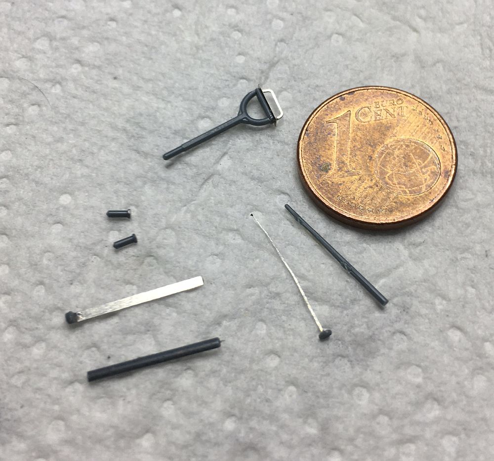 Dann habe ich noch die Einstiegshilfe und die Antennen auf Metal umgebaut. Die abgeschnittenen Plastikteile liegen zum Vergleich daneben.