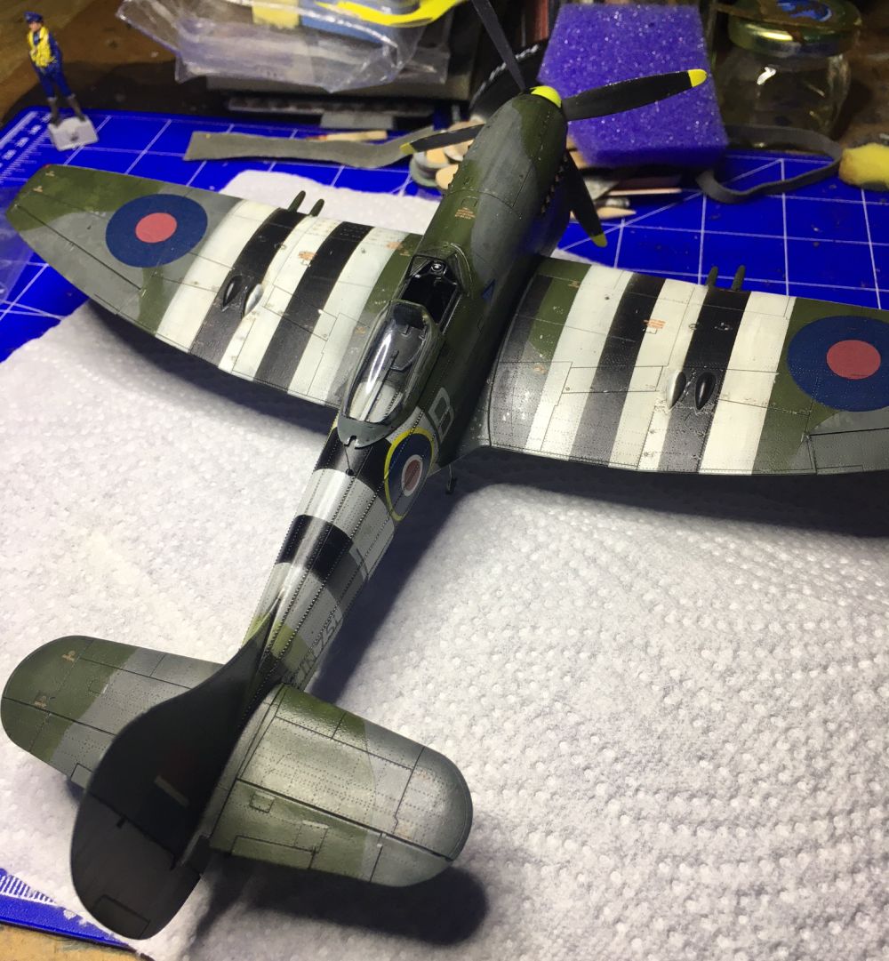 Ich hatte mir mal bei einer Spitfire die Mühe gemacht das Tarnmuster jeweils abzudecken, damit die Schattierung durch 2 maligen Farbauftrag nicht verschwindet.