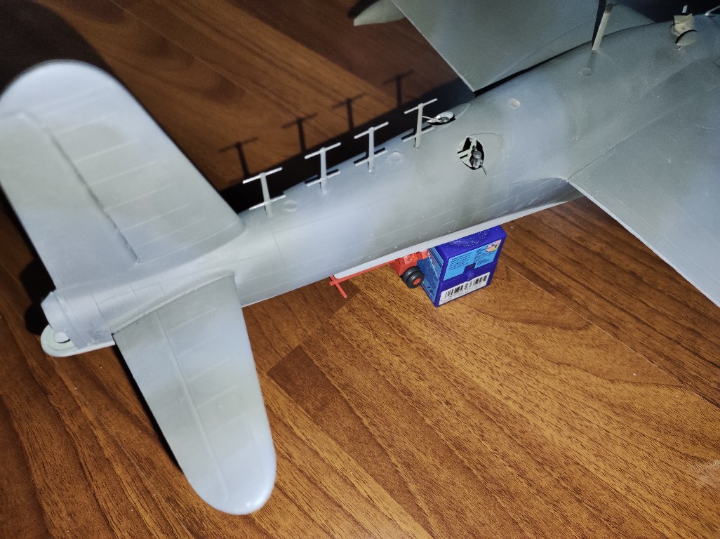 Leider musste ich den Rumpf noch einmal öffnen. Ganz schlimme Arbeit, hier wird es wohl nach dem Lackieren nochmal nacharbeit geben