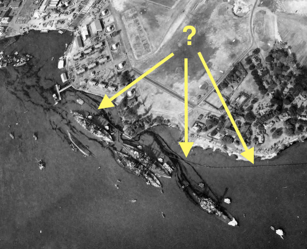 Erkennbar ist es auf Fotos, die von der damaligen Battleship Row gemacht wurden.