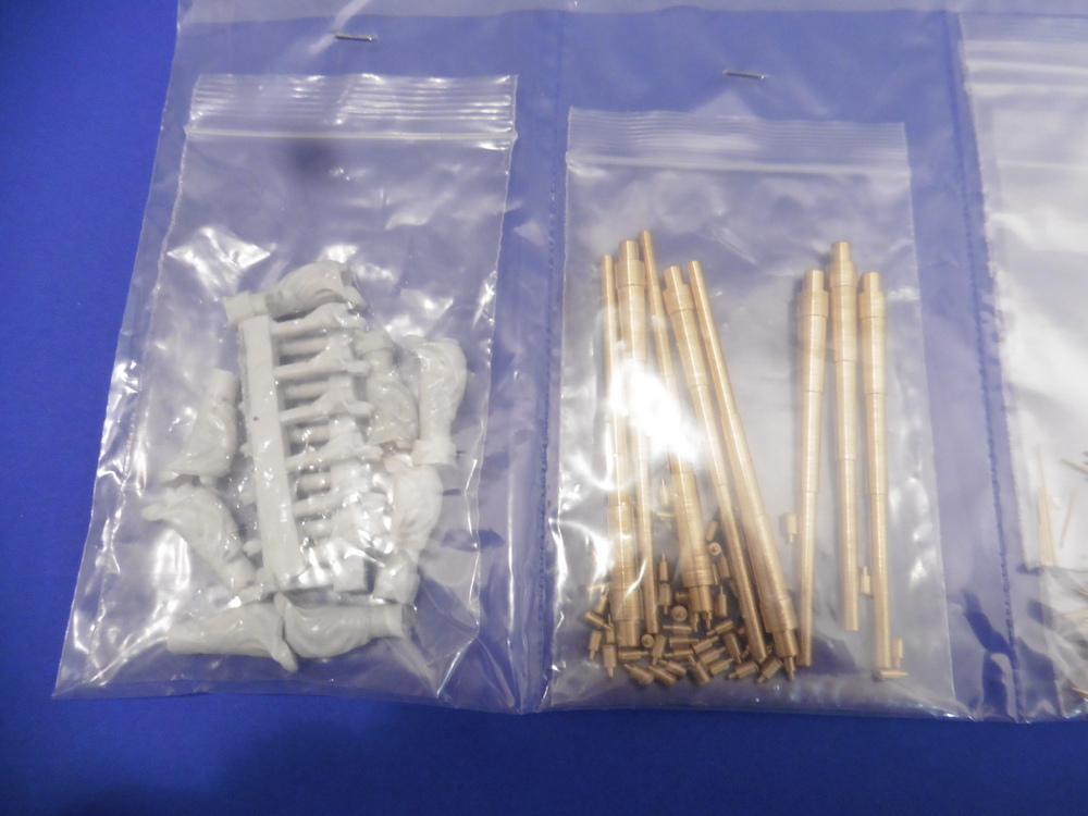 Weiterhin die Schiffsschrauben aus Messing (?) Dann haben wir noch eineige Resinteile für die Rohrhosen.