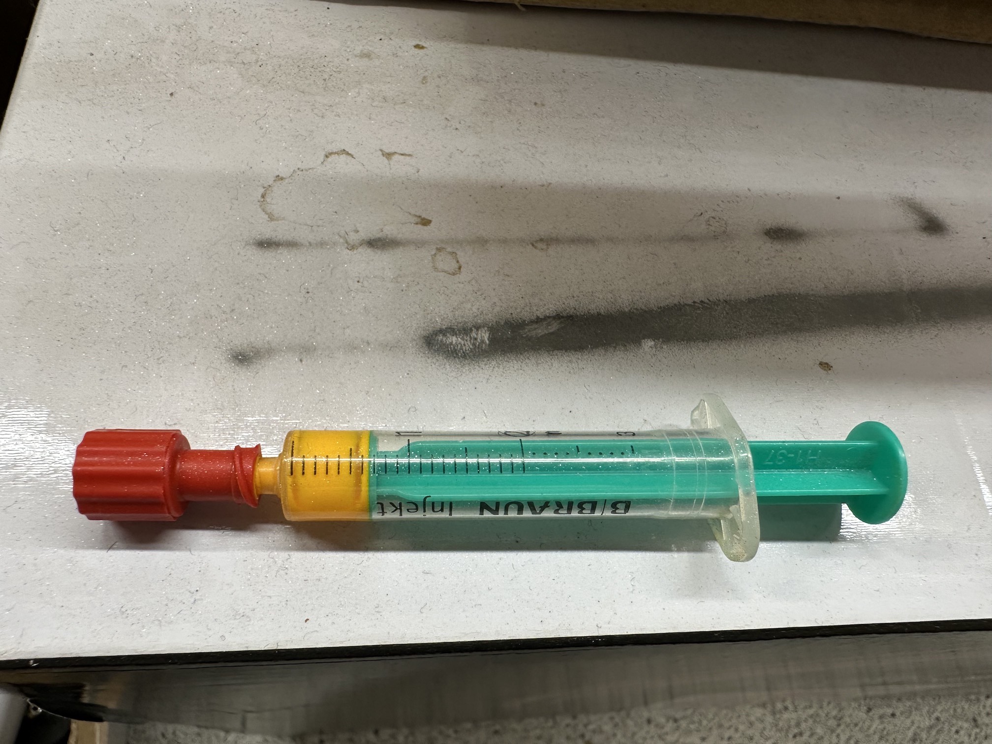Eine nette freundliche Mitarbeiterin aus dem Labor von der Apotheke bekam mit was ich wollte und hat sich dann am Gespräch beteiligt. Sie hat eine Freundin die mit Airbrush und Lebensmittelfarben, Ihre Kuchen dekoriert. Also holte sie die Glasfläschchen und verschiedene Pipetten Aufsätze. Es gibt diese für Dünn Flüssige und Dick Flüssige Gebinde. Genau das was wir Gebrauchen können. Dick für aus dem orginal Töpfchen was heraus zu holen und die für Dünn um es in die Airbrush/Farbschälchen nach dem anmischen zu nutzen. Die restliche Farbe (Angemischte und zu viel) kann dann in dem passenden Pipettenfläschen aufbewart werden, oder man kann ja auch dierekt mehr davon fertig machen falls man sie später noch einmal braucht. Ach ja die kosten liegen so ca. bei 2€ pro kompletten Pipettenfläschchen je nach ml Größe.