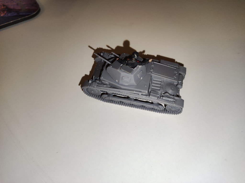 Relativ klug vom Hersteller das dunkelgraue Plastik zu verwenden, so könnte man als Wargamer den Panzer auch ohne Farbe verwenden, aber wir sind Modellbauer und da ist es ein No-Go :lol: