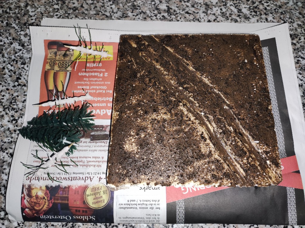 Eine Grundplatte, sowie zwei Bäume, ehemals von einem Kuchen, sind schon grob Platziert