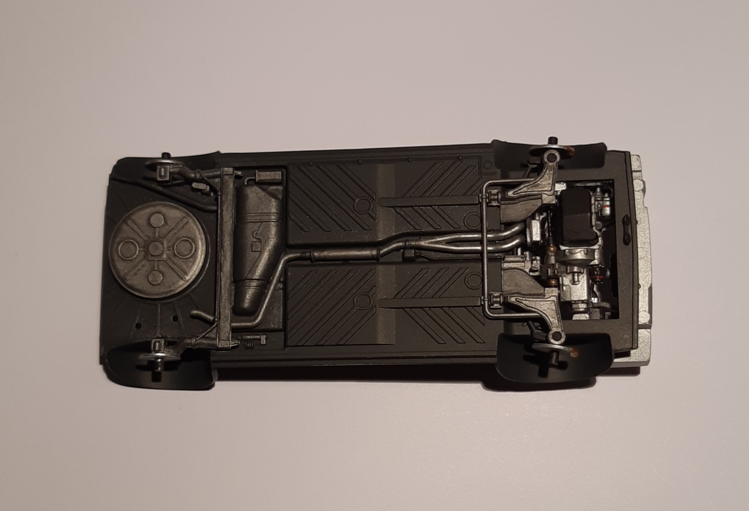 Die Unterseite ist doch sehr ordentlich geworden. Vielleicht mit einem hellen Ton über die "Schrägen unter den Sitzen" trockenbürsten, damit diese etwas hervorgehoben sind.