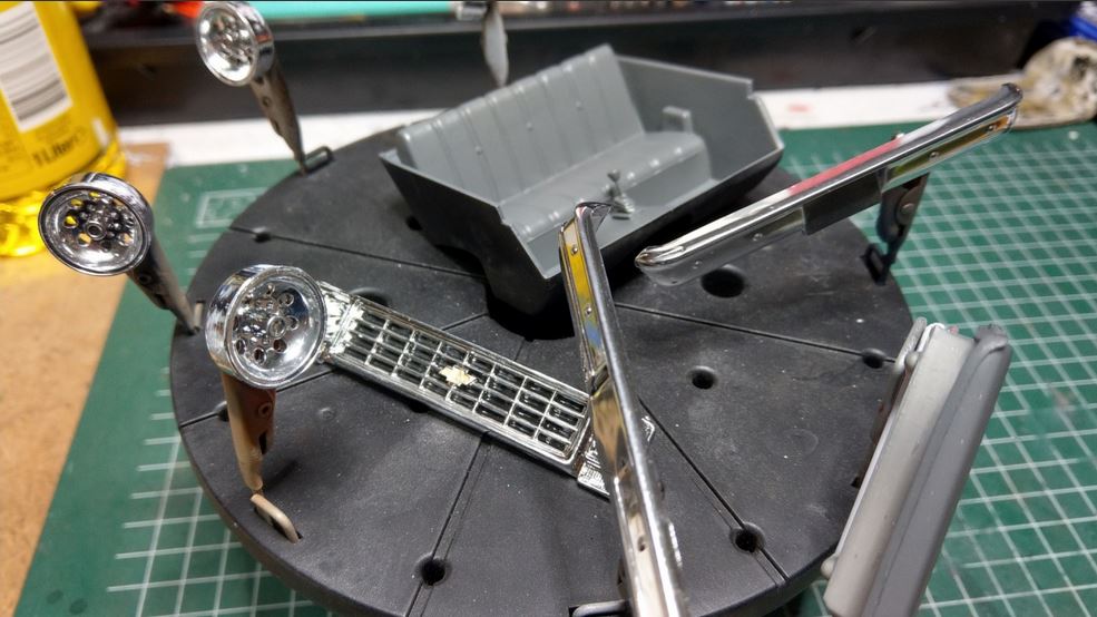 Hier sollen die Felgen bzw. das Chrome mit Klarlack matt lackiert werden. Das mache ich nicht, sondern werde ich dafür von Alclad II das polierte Alu nehmen...(nach dem ich die "entchromt" habe), weil ich denke, das sieht besser aus.